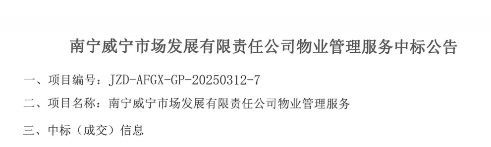 南宁乐鱼(中国)市场发展有限责任公司物业管理服务中标公告