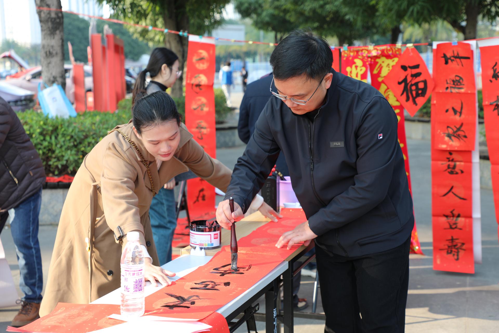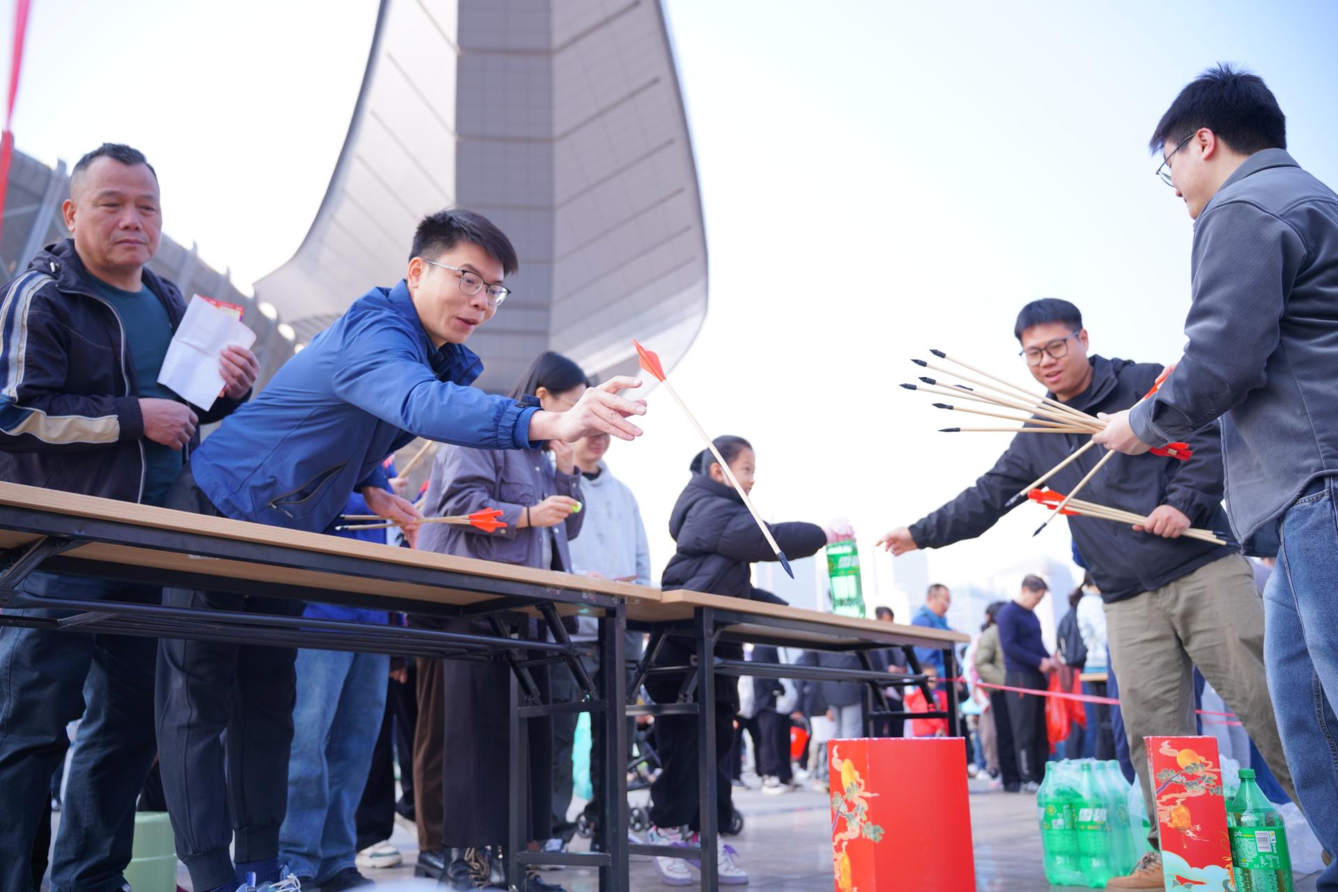 “感觉喜气洋洋的,一下子就有了过年的感觉!”一位职工家属手捧福字说道,在游园区,送春联活动现场人气颇高,多位职工及家属现场蘸墨挥毫,一幅幅对仗工整、寓意吉祥的春联跃然纸上,令人赏心悦目。现场还有套鸭子、踢蹴鞠、送糖葫芦和糖画、集章等极具趣味性、民俗性的活动项目,处处充满喜庆祥和的节日氛围。