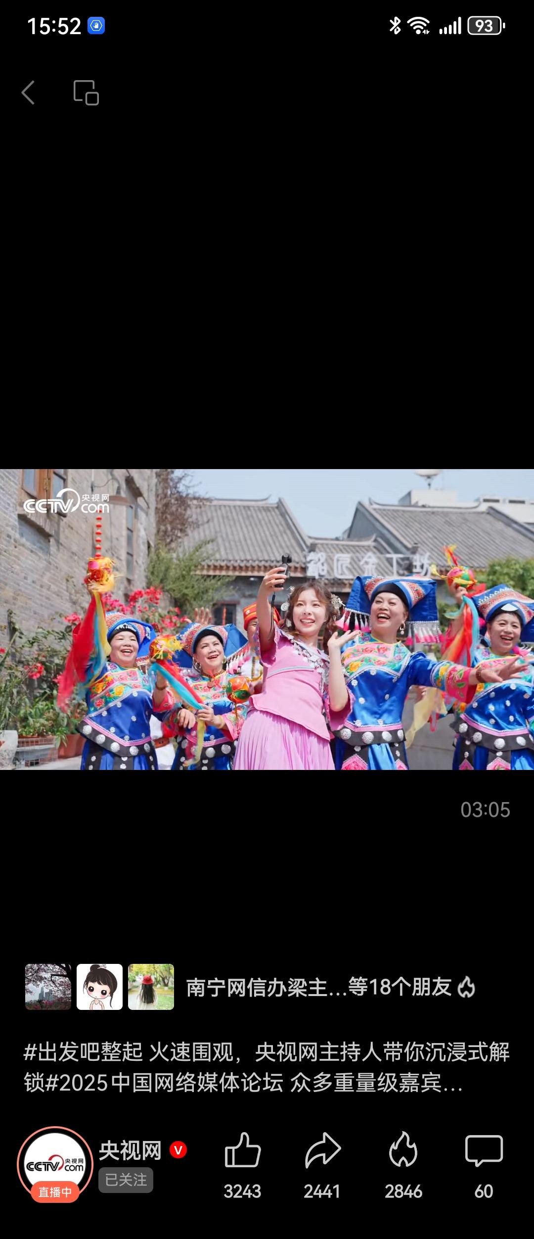 邕州古城·三街两巷作为2025中国网络媒体论坛之“多彩民族,壮美广西”主题观摩点,吸引了中央广播电视总台、南宁广播电视台、南宁晚报等多家媒体前来报道。三月三当晚,南宁市融媒体中心联合广西云-广西日报走进南宁夜市主场活动,在邕州古城·三街两巷进行长达一小时的直播,赏马山会鼓、品茉莉香茶、逛文化夜集、体验非遗技艺,全网总观看量达6224万人次。
