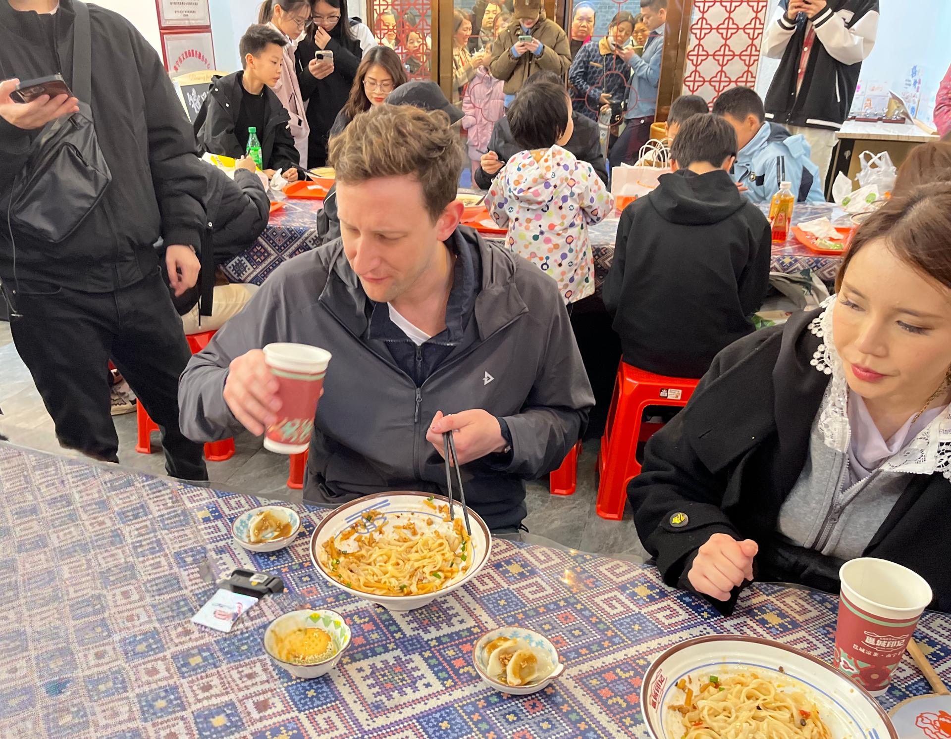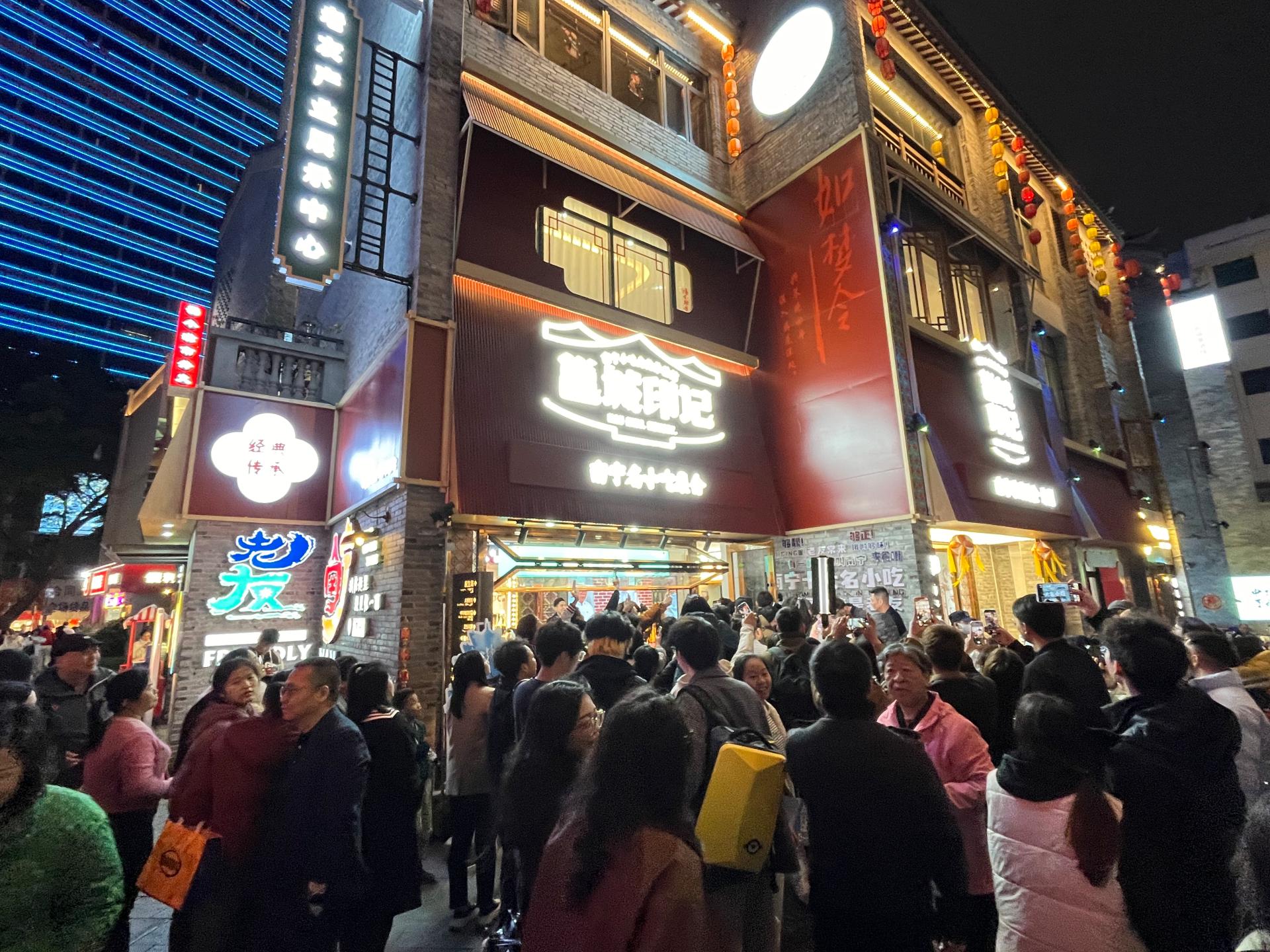 假期期间,邕城印记举办“夜研学”主题活动,吸引南宁市第一职校的学生到场参加广西非遗“麼乜”研学,通过"夜间课堂+沉浸参与"的创新形式,让非遗研学课程成为学生群体过节的潮流选择。与此同时,国际友人埃文·凯尔也在邕城印记感受了一波“老友风情”,逐一品尝南宁老友粉、邕城凉茶等南宁名小吃,生动诠释“美食无国界”的文化理念。据统计,在“广西三月三”假期期间,邕城印记接待市民游客超1万人次,销售南宁老友粉2000多碗。