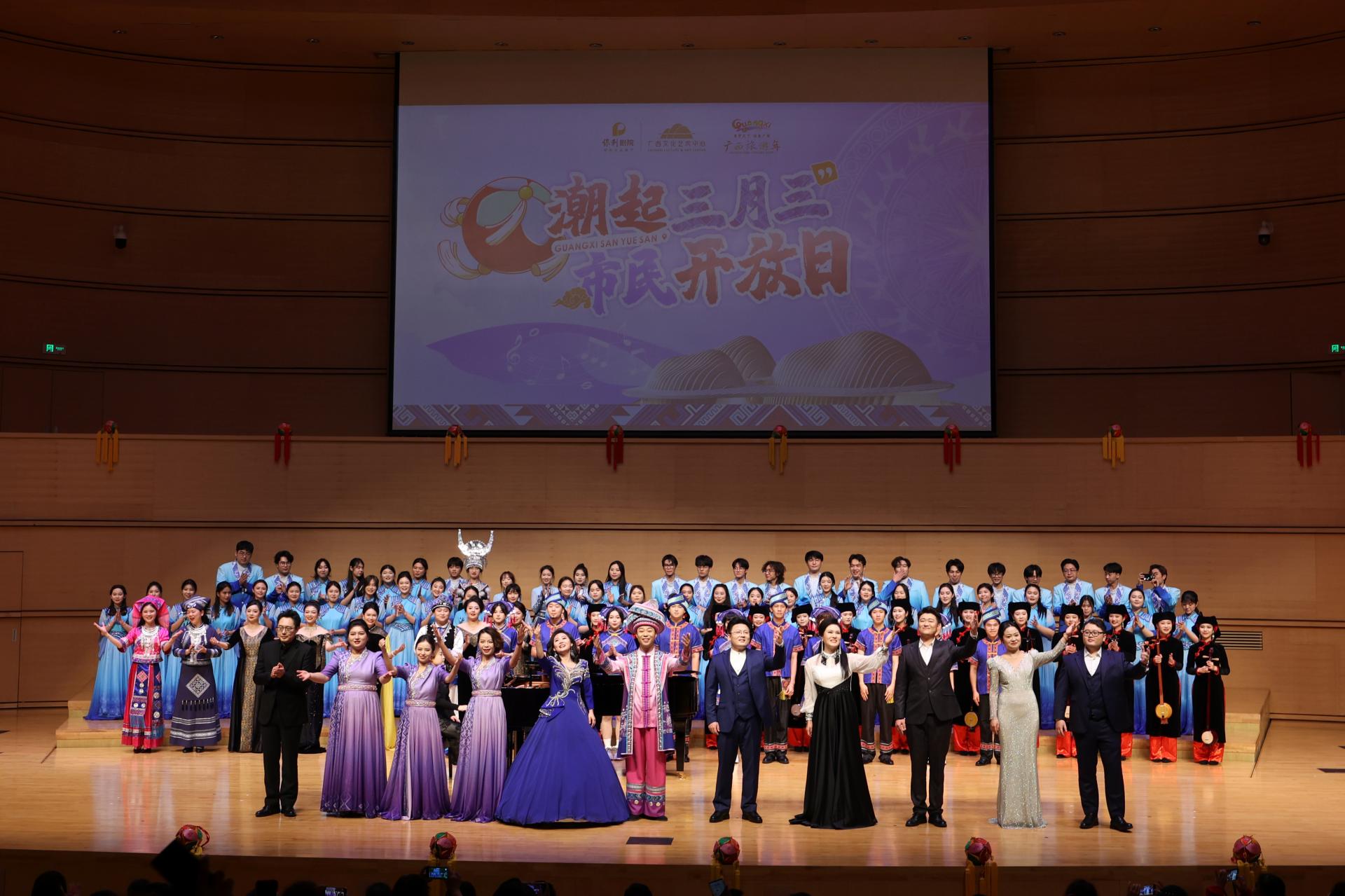 广西文化艺术中心精心策划并成功举办一系列高品质的文艺活动,为节庆文化内涵提升新活力。3月31日,广西交响乐团于音乐厅深情演绎 “欢庆广西三月三” 交响音乐会。音乐会以交响乐形式,创新性地呈现《北部湾音诗》《印象三月三》等饱含壮乡风情的经典曲目,实现了高雅艺术与民族元素的有机融合,为现场观众带来一场震撼的视听盛宴。