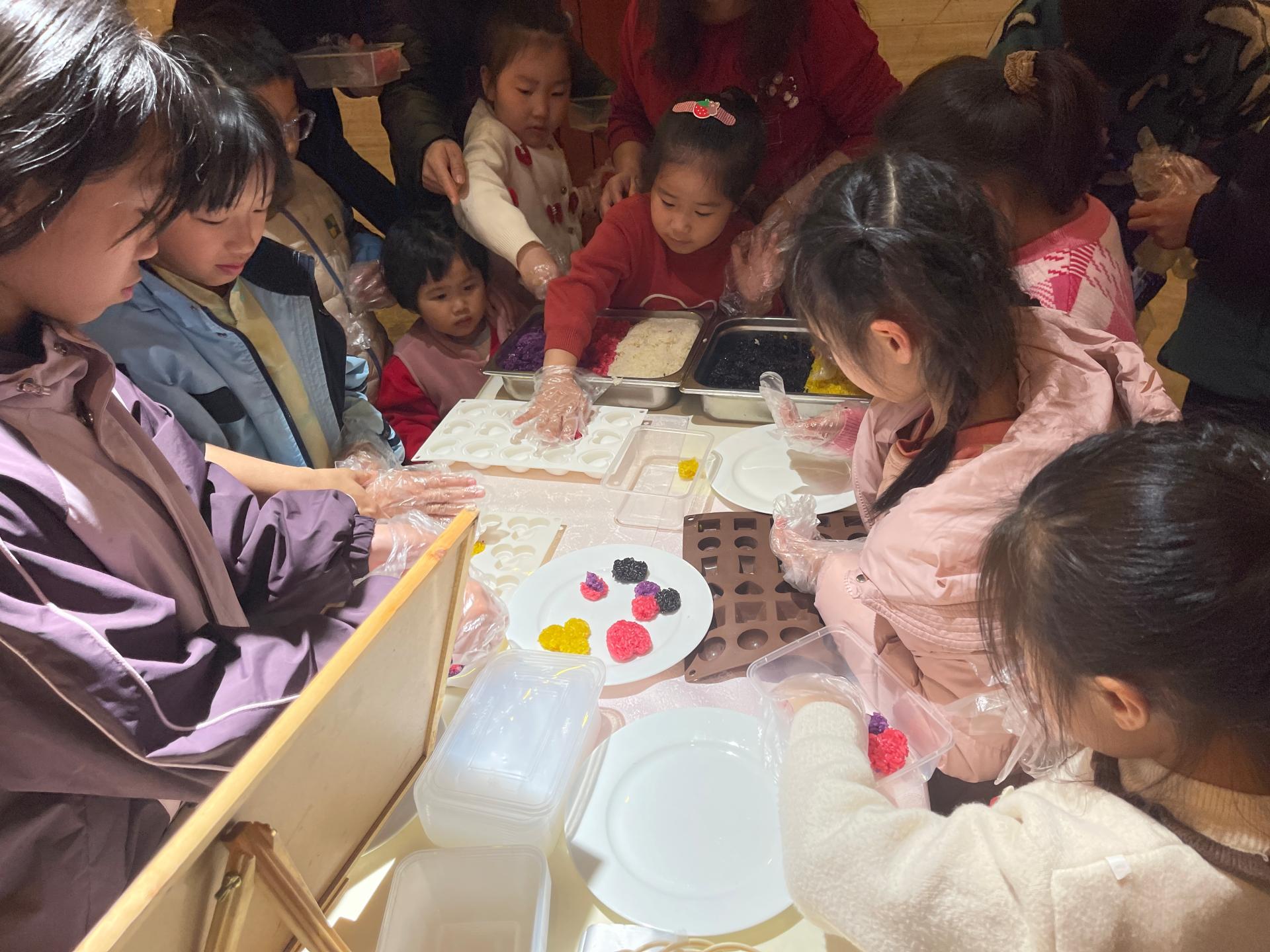 在文化体验区,孩子们通过抛绣球、制作中药香囊感受非遗智慧;在美食体验区,长桌宴摆满五色糯米饭等壮乡美食,萌娃们围坐品味传统滋味,定格文化传承的美好瞬间。