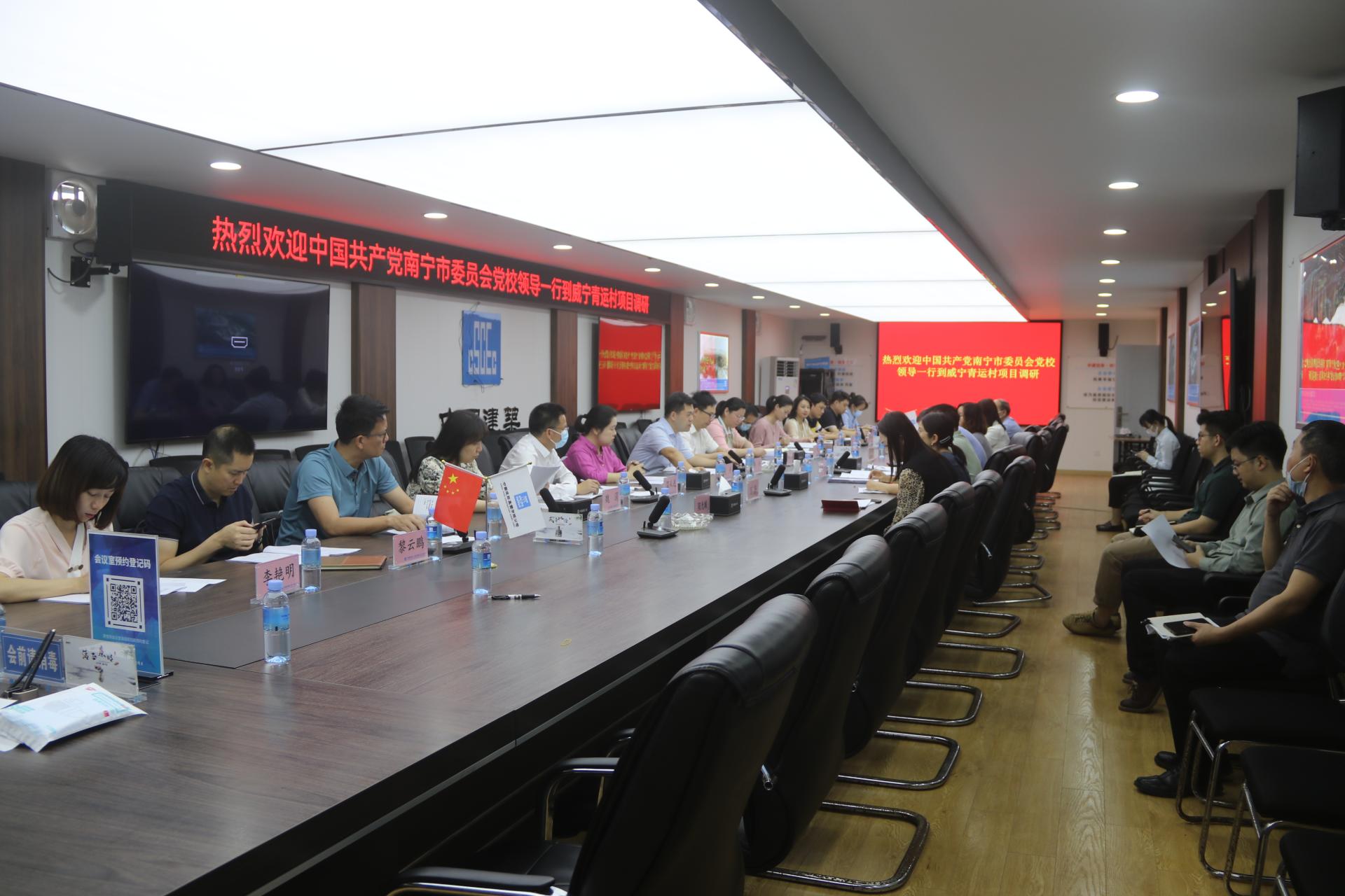 为紧紧围绕强首府“1+3”工作思路,特别是“五强”中强治理的重点工作部署,对南宁市房地产开展专项调查研究,并提出南宁市房地产良性循环和健康发展的对策建议,2022年5月19日上午,中共南宁市委党校常务副校长黄东耿率市委党校中青一班第五实践组一行赴乐鱼(中国)青运村项目开展“强治理”课题实地走访调研。南宁五象新区管委会建设局局长唐绍东主持召开座谈会,五象新区管委会自然资源局、邕宁区住建局等相关人员及有关房地产企业参加座谈,乐鱼(中国)房地产公司党委书记罗春玉陪同。