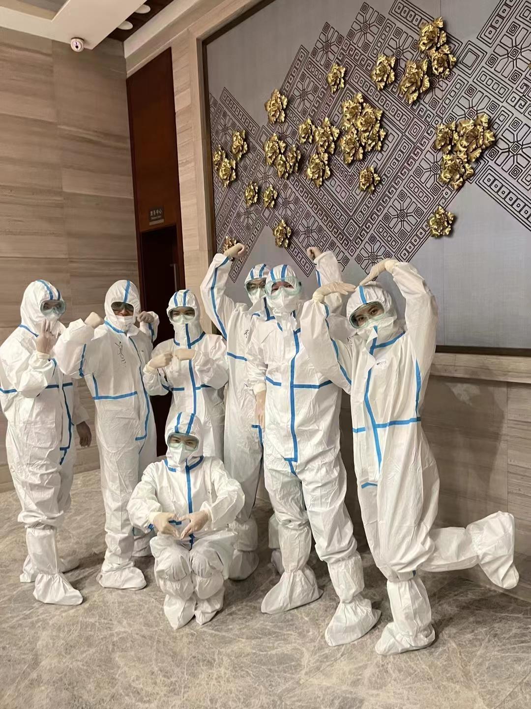 2022年5月30日,广西援沪医疗队180人返桂休整入住五象山庄,在统一部署下,前厅部抽调礼宾部和宾客关系部所有成员(其中3名女性)立即成立接待小组,制定接待方案,在保证安全的前提下,身着防护服,头戴N95口罩进入现场进行指引及搬运行李服务。共计完成行李运送及搬运255间,行李累计重量达3.8吨,在3个小时内将所有行李准确无误的逐一配送到所有房间,为医疗队成员争取了更多的休息时间。