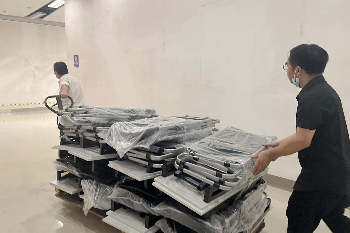 一个计算器,是细致严谨。“89、90、91,数对了!这车一共91顶帐篷!”“大家注意一下,桌子是两张一组,椅子是三张一组,用透明胶带捆绑好”,在物资筹备现场,公司会计手持计算器认真地清点着数目,面对繁重的任务、紧张的时间,乐鱼(中国)人各司其职,身忙心不乱,当发现桌椅物资不足时,乐鱼(中国)人充分展现出系统内互帮互助的友爱精神,乐鱼(中国)酒店公司与乐鱼(中国)文体公司通力配合,沉着应对,采取紧急联系供货商连夜补货、向其他公司调借等措施,完成桌子、凳子等物资缺口填补900余件。在紧张忙碌的“加班加点”中赶出效率,保障质量!