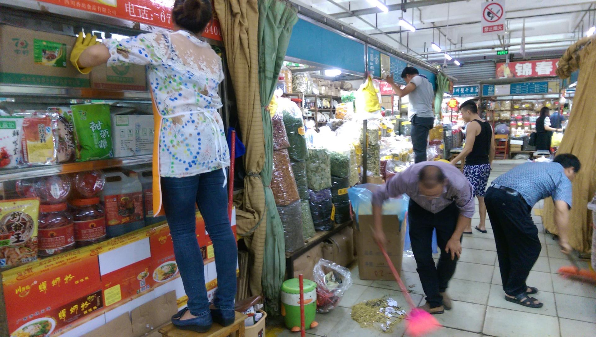 交易场组织经营户周末大扫除