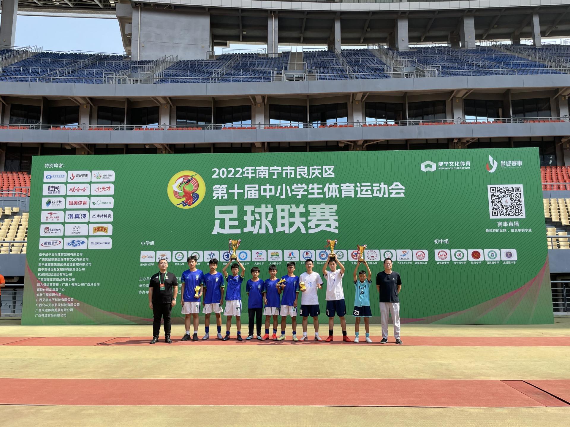 本次足球赛采取七人制足球规则,共有良庆区29所中小学校39支队伍参赛。阳光新城学校,南宁四十四中分获男子小学组、初中组冠军,那团小学、体强路初级中学分获女子小学组、初中组冠军。