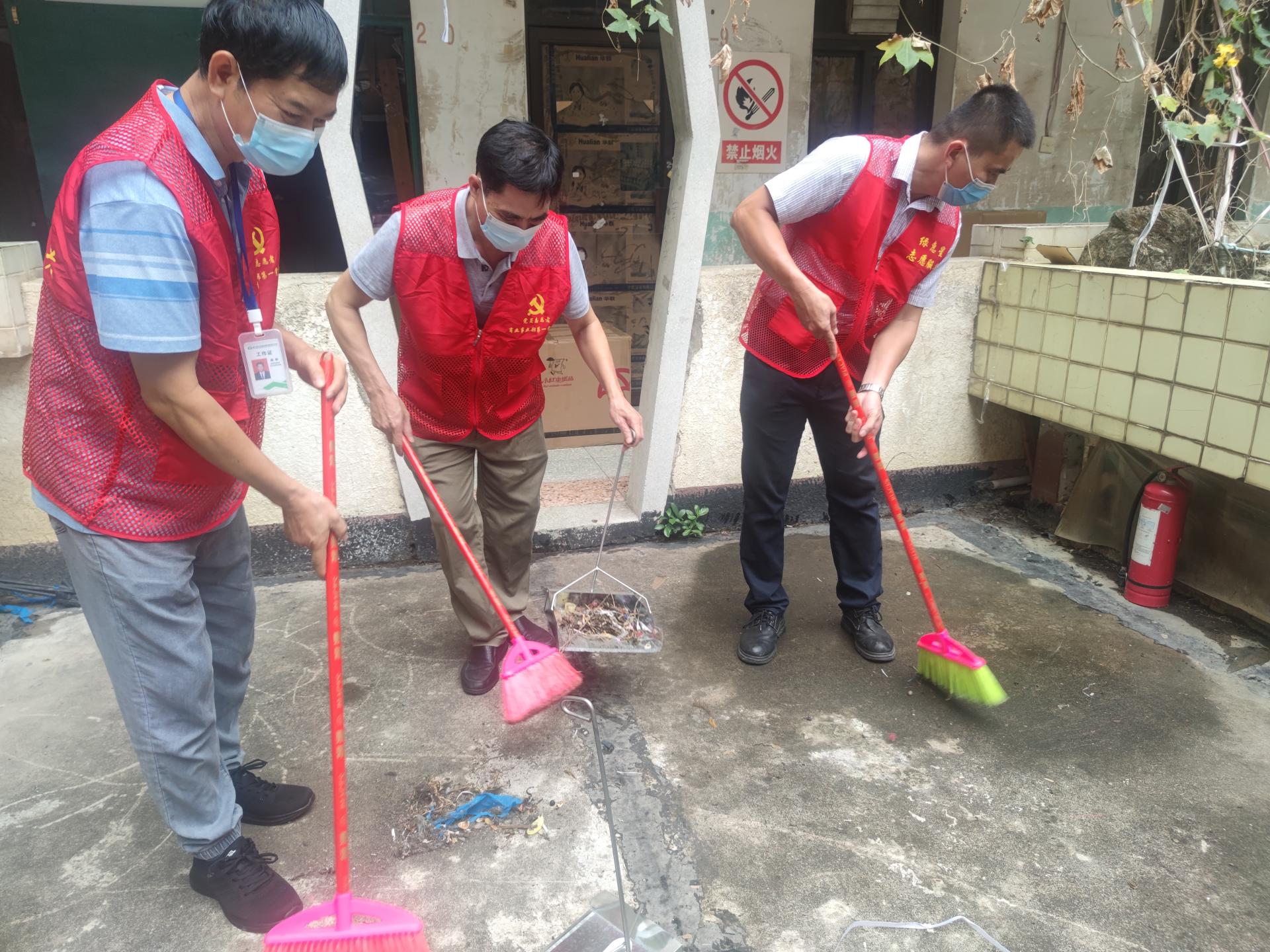 志愿者与经营户开展卫生大扫除
