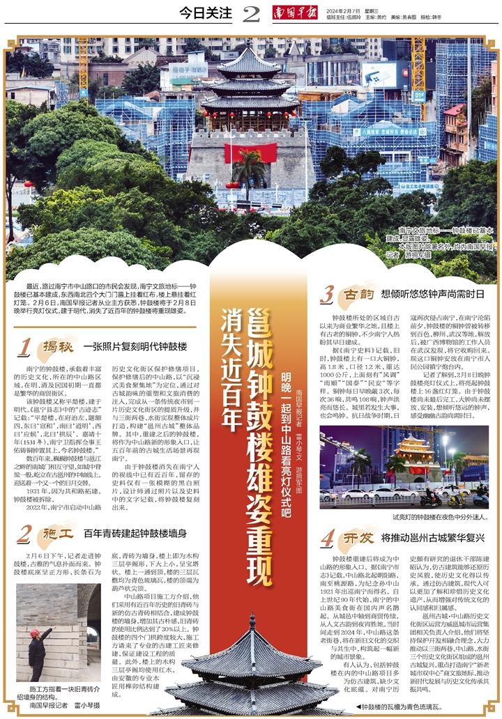 作为邕州古城·中山路历史文化街区的形象入口,百年钟鼓楼风采重现,被视为邕州古城·中山路历史文化街区华丽亮相的第一步,更是威邕城市运营集团打造邕州古城城市级商文旅项目的关键一步。