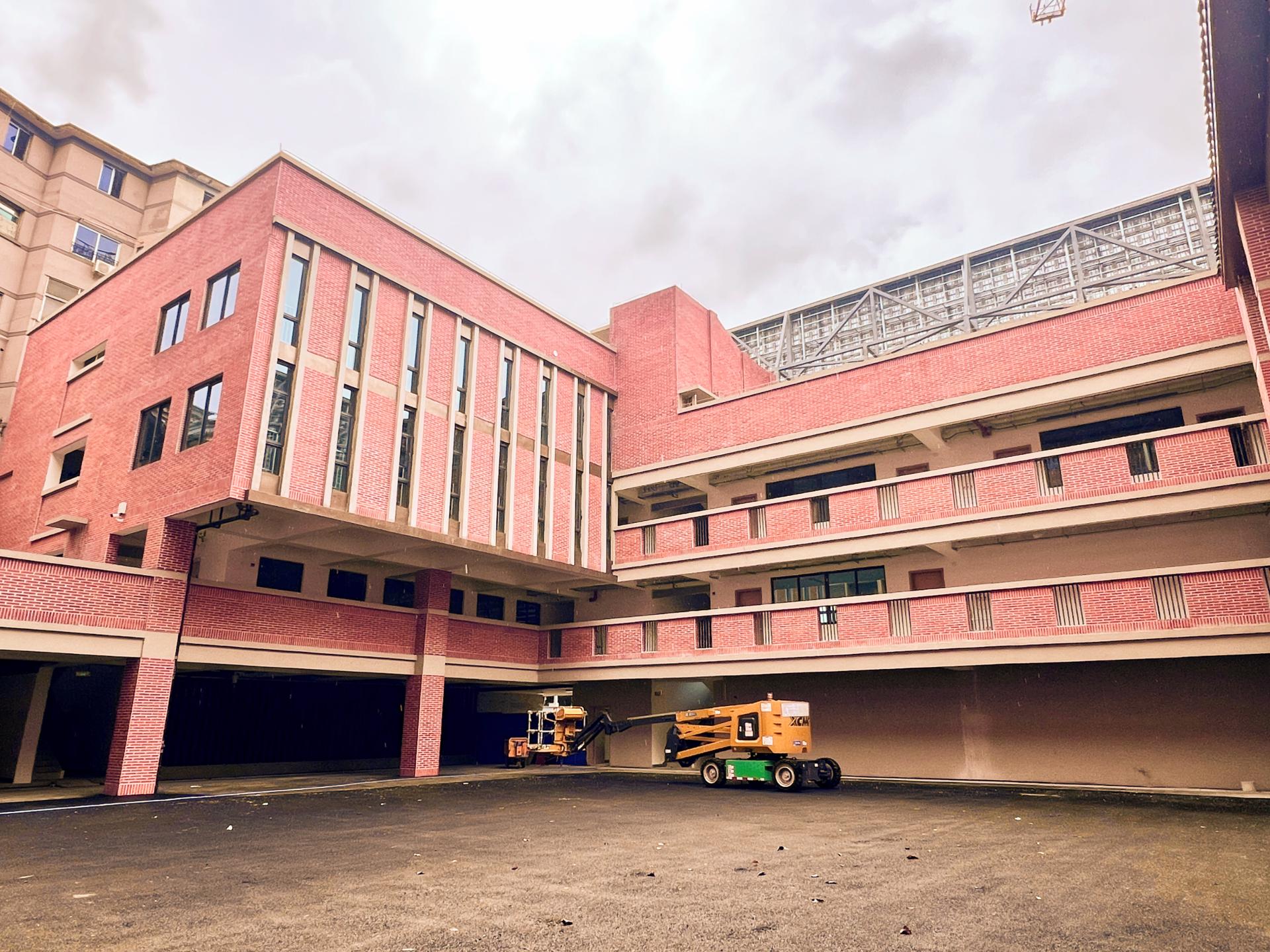 在建设过程中,中山路小学分几个地块零星交付,基础施工位置距离邕江宾馆的行人通道过近,存在施工场地狭小、吊装材料难度大的问题。为此,公司建设团队紧盯任务目标,落细责任措施,科学安排施工方案,通过控制材料进场管理和优化材料进场计划,保证进入小学场地内的材料能及时投入到施工中,减少材料堆积占用场地;开挖的土方当日清理运出场外;在材料吊装区域内的行人通道上搭设防护棚,保证旁边过路行人、行车的安全,杜绝吊装施工造成的不安全因素的影响。项目通过多措并举,确保了土方开挖、基础工程、主体工程和装饰装修各阶段的高质量完工。