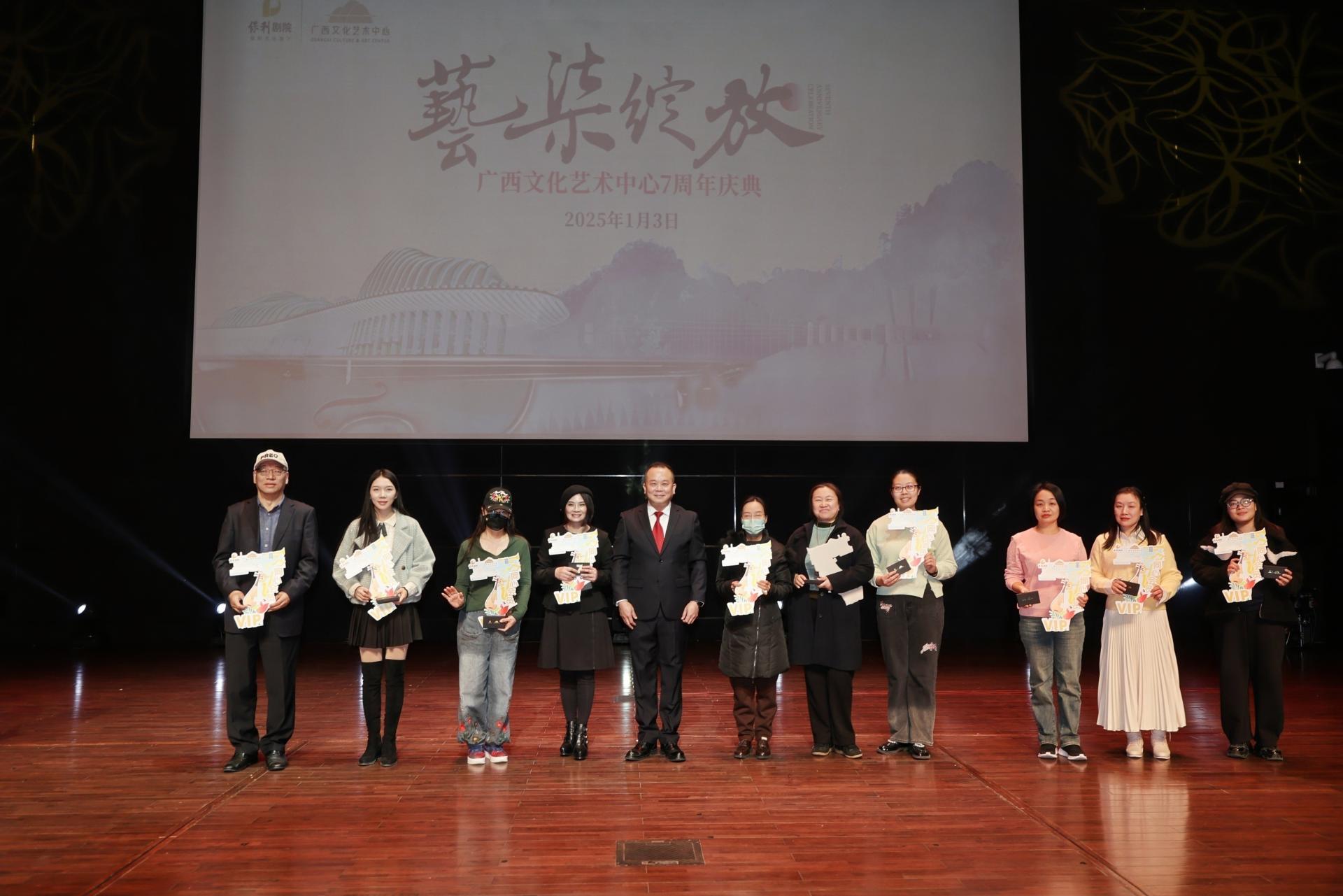 近日,“艺柒绽放——广西文化艺术中心七周年庆典”在广西文化艺术中心多功能厅盛大举行,近300名来自社会各界的嘉宾欢聚一堂,共同为这座艺术殿堂献上最热烈的“生日颂歌”。