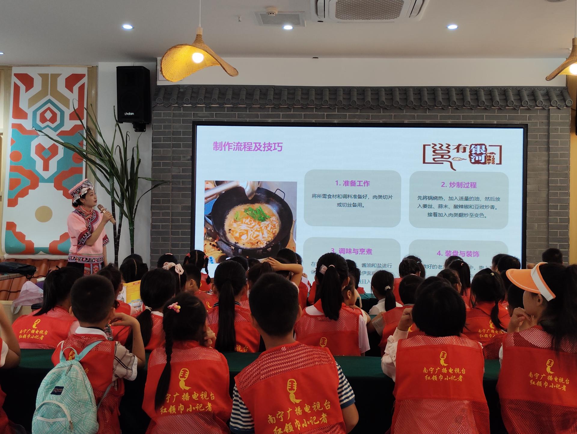 2024年国庆节前夕,银河公司在“邕州古城·三街两巷”打造了邕城印记民俗技艺展示中心,邕城印记以传承非遗民俗技艺、传播非遗民俗文化、推广南宁餐饮文化为经营目标。邕城印记开业以来,已成为市民游客和学生体验非遗民俗文化、参与非遗研学、品尝非遗美食、聆听南宁历史故事的打卡点。银河公司依托邕城印记开设的“非遗+研学”课程,对老友粉传统制作技艺进行了具象化展示,让学生们直观感受到老南宁优秀历史文化的魅力。
