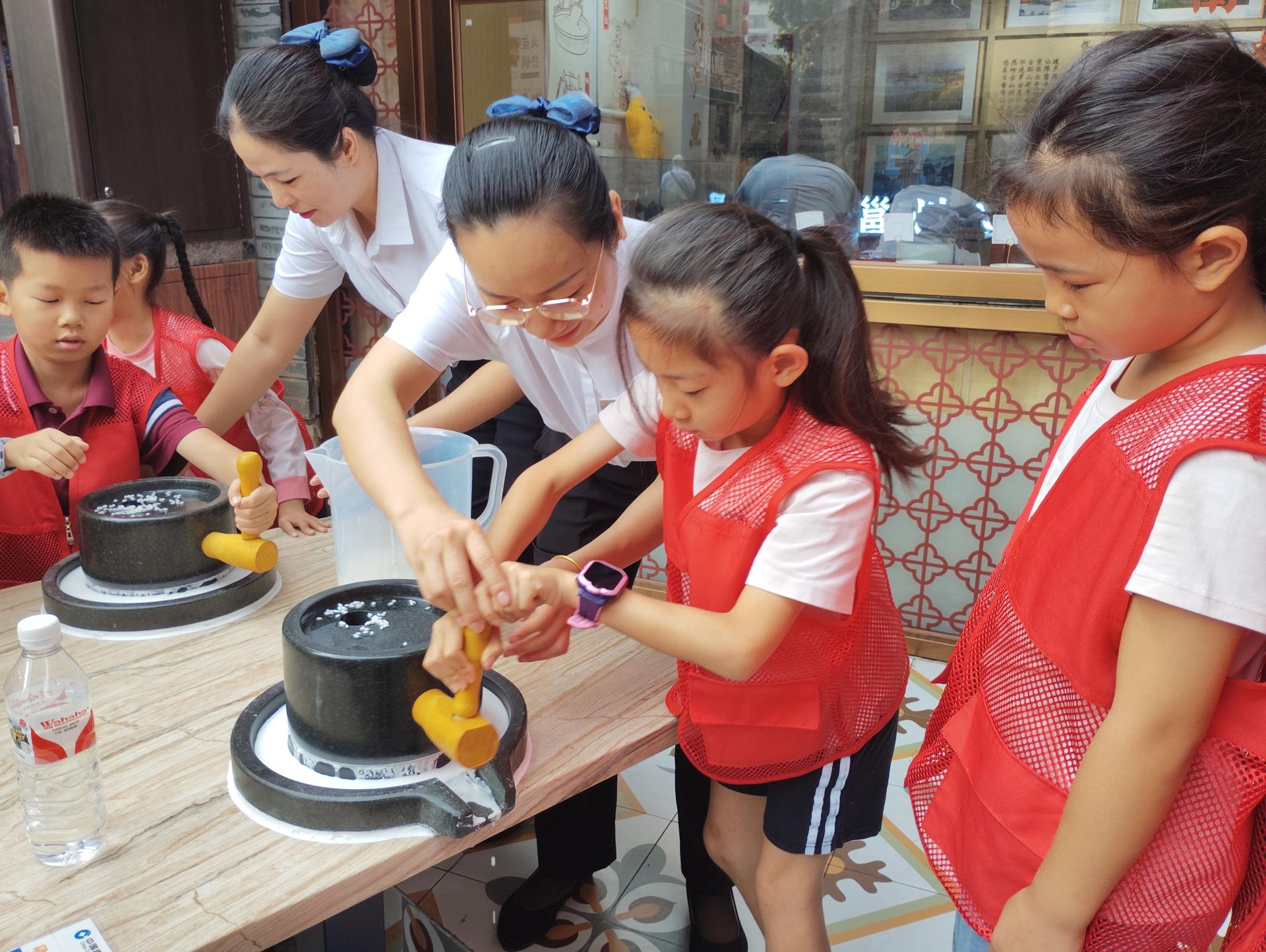 为传播历史文化精神,弘扬非遗传统文化,银河公司在银河大酒店创建了老友粉研学基地。在这里,学生们不仅能够近距离感受自治区级非物质文化遗产代表性项目——“南宁老友粉”文化的独特魅力,还能亲身体验从选米、磨粉到米粉成型的完整制粉过程。这种沉浸式的学习方式,使学生对传统手工艺、非遗技艺有了更直观的认识,激发了他们热爱邕城南宁的情感。