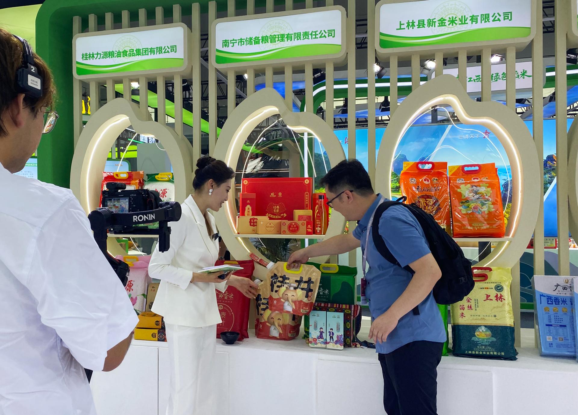 本次展会,广西展馆以“壮乡山清水秀 八桂粮油飘香”为主题,通过“1场专场推介会+1个主展区+1个脱贫特色展区”的“1+1+1”形式全方位呈现广西粮油产业发展成果。储备粮公司充分利用此次大会平台,大力宣传推广“桂井金泰银针”“桂井有米礼盒”等桂井粮油产品,吸引众多经销商、顾客和市民朋友驻足了解和采购。同时,紧抓机遇,主动借助新华网广西频道媒体直播平台,积极入镜推介公司自营粮油品牌。据悉,桂井品牌相关直播推广视频播放量达60.63万次,全面提升了储备粮公司桂井品牌的美誉度和知名度。