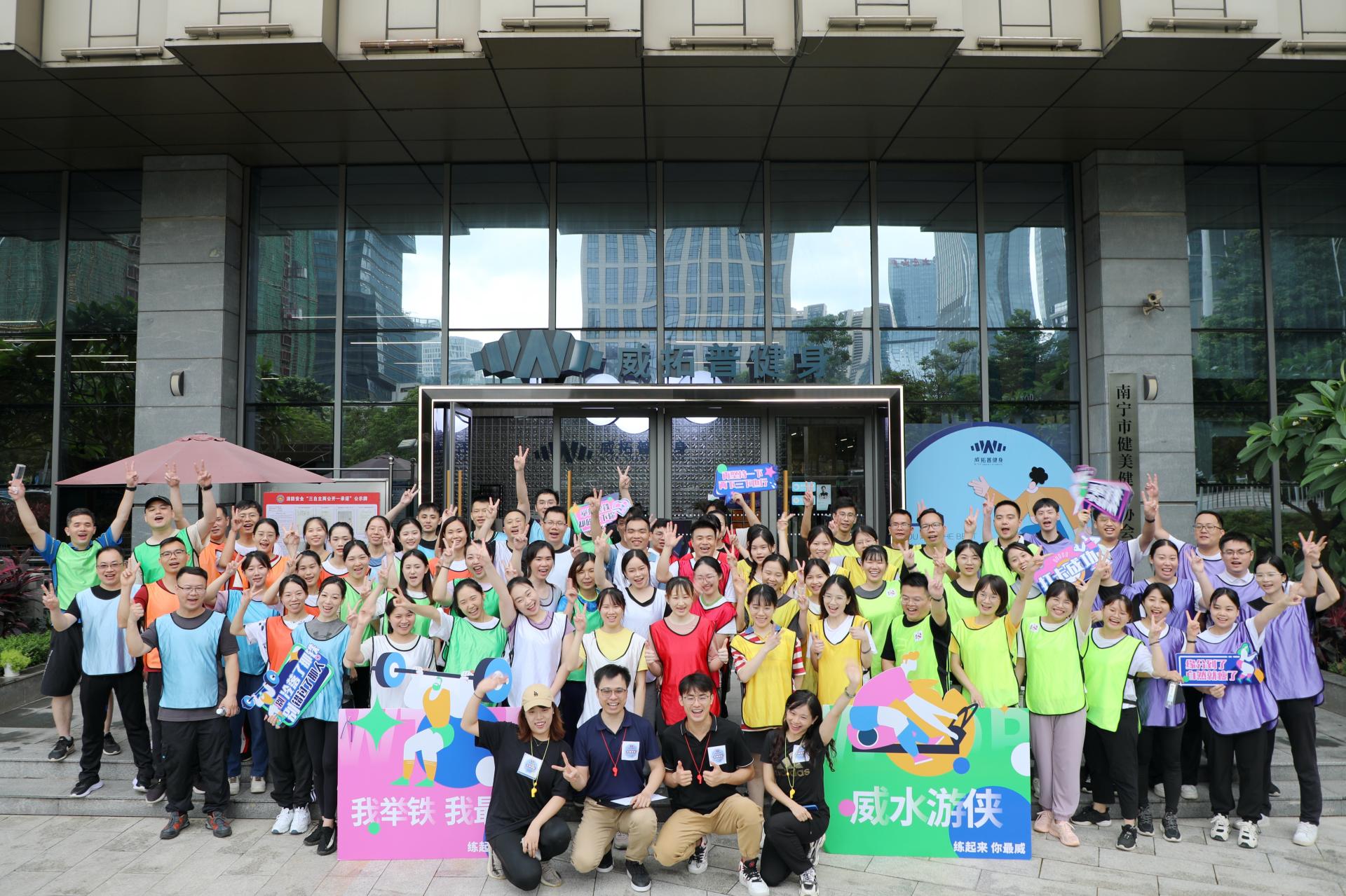 勠力同心,展示乐鱼(中国)风貌。7月8日上午,新员工们来到广西体育中心威拓普健身馆开展团队素质拓展活动,加速各团队之间的融合,强化团队协作、互帮互助的理念。本次拓展活动既有传统类团队协作、斗智斗勇的环节,更是借助威拓普健身馆内设施,开展科技化如“全息折返跑”、“全民动感单车”环节。活动结束后,新学员们参观了广西体育中心主体育场和泳游馆,实地感受乐鱼(中国)的速度与品质,增加新员工的企业自豪感和对集团稳健且快速发展的信心。