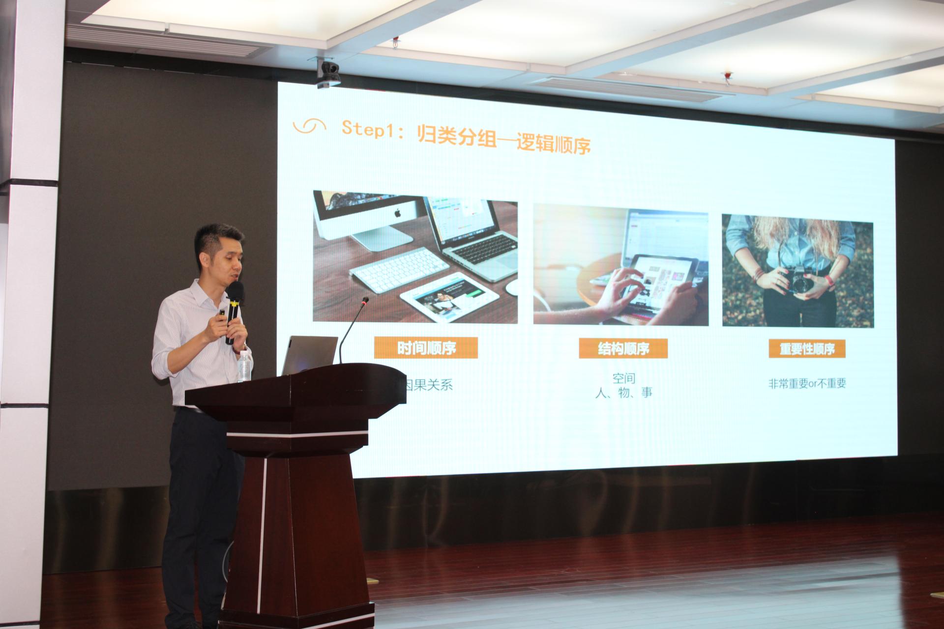 培训内容围绕结构化思维的定义、特征、实际运用场景、思维导图、模型和原则五个方面展开,讲授如何在工作中做到“复杂问题简单化,杂乱问题清晰化”。授课老师从一份工作报告引出逻辑思维的重要性和关键点,启发学员树立“表达要以受众为中心”的理念。在讲解思维导图和金字塔结构四原则时,授课老师介绍了突出表达重点的方法,并通过小组PK的方式,调动学员的积极性,对学员的表达能力进行反复训练,强化先后逻辑和主次差别的结构化表达思维。