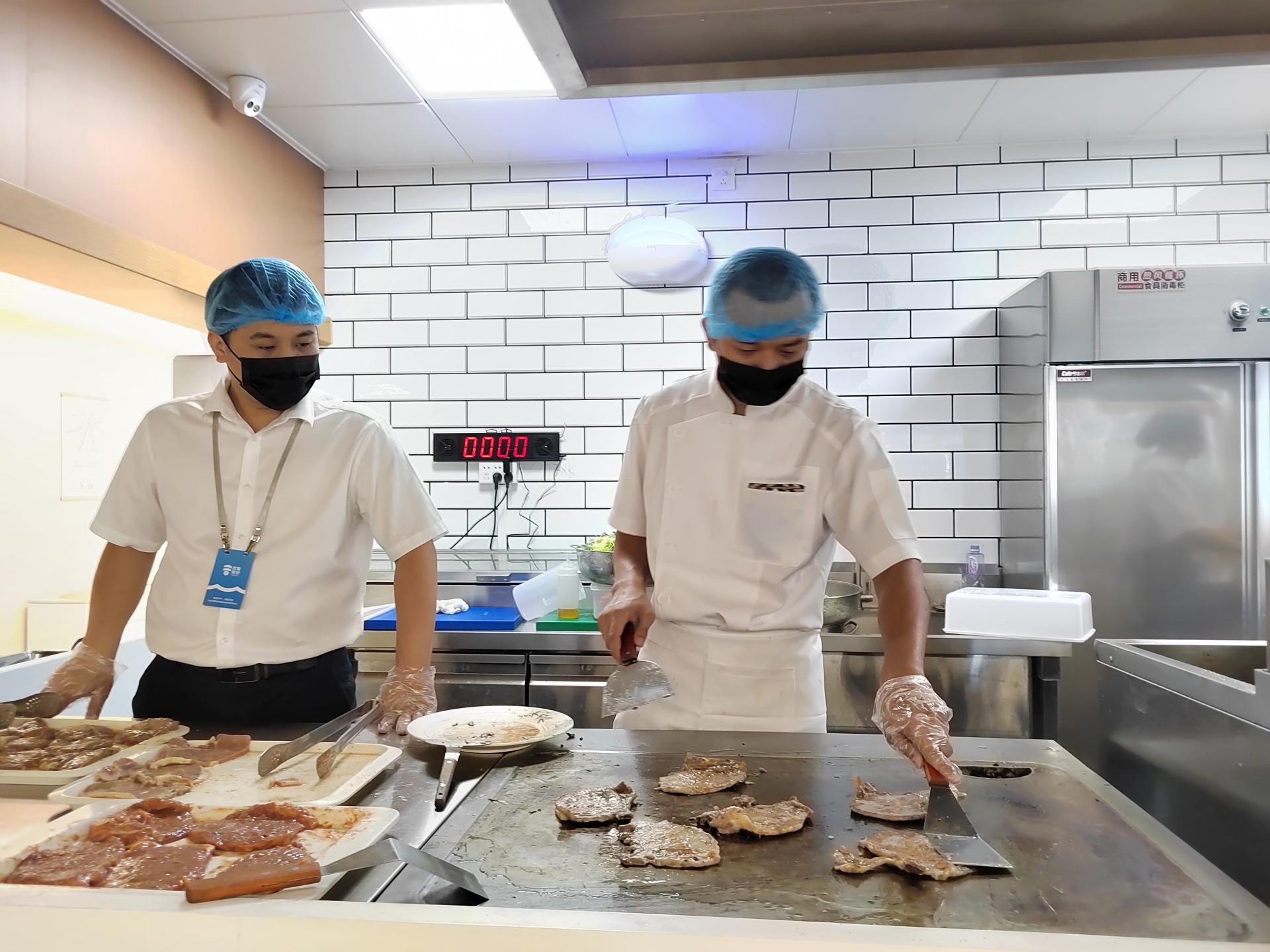 在讲座交流活动中,由厨师现场烹饪了嫩滑猪肉片、香菇马蹄肉饼、牛扒、黑椒脆皮鸡扒等产品,菜品口感得到大家现场试吃后的一致好评。客服高级经理陈蔚彰说,通过今天的活动,对预制菜的了解有了更直观的认识,预制菜不仅能够解决学校食堂对于操作便捷高效、出品质量稳定的需求,而且口感嫩滑,符合学生普遍的口味。