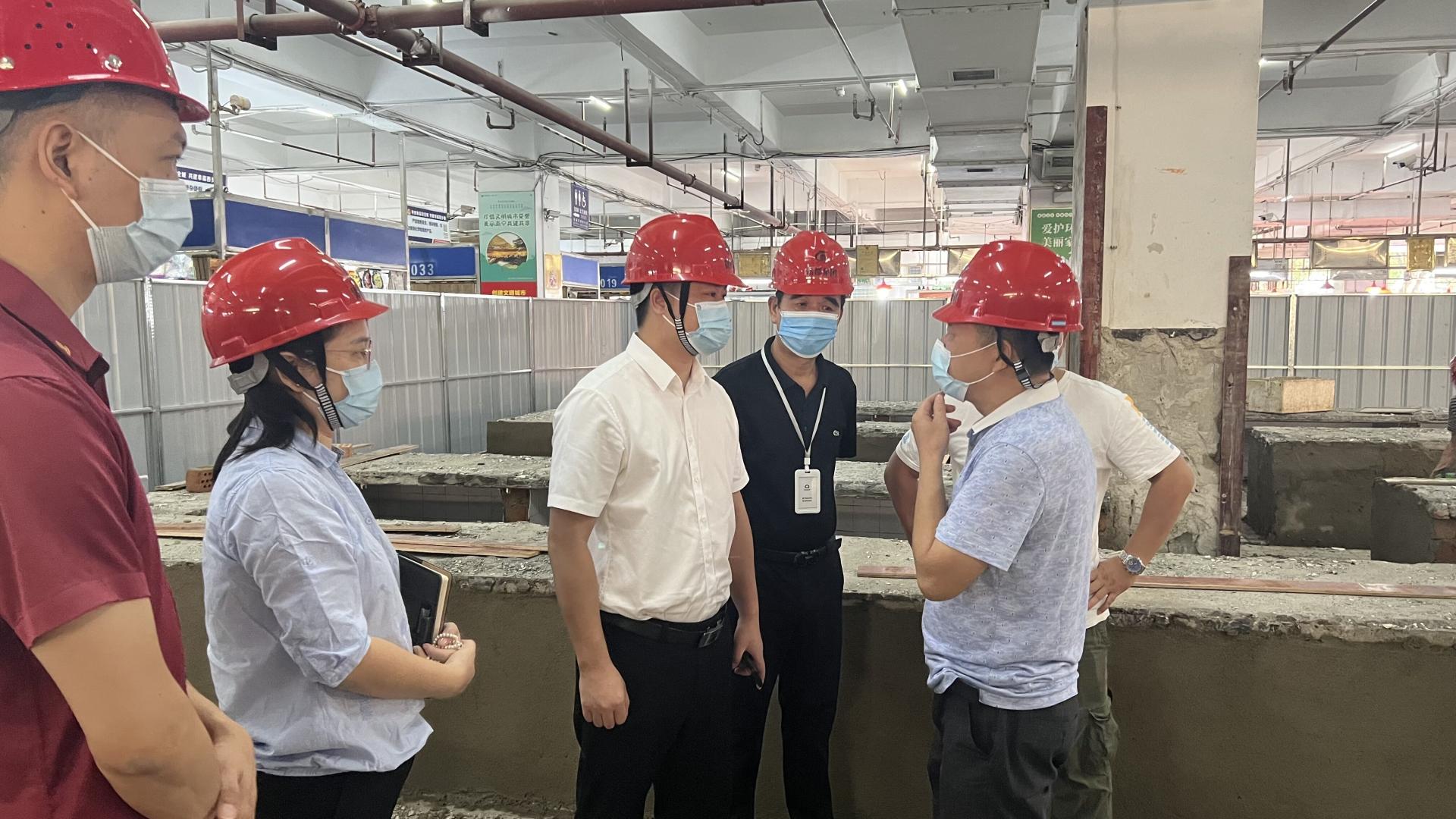 在施工现场,督查组听取了星湖市场、水街市场及那元果菜市场升级改造领导小组、施工单位、监理单位关于市场升级改造施工情况的介绍,并就施工现场需要协调解决的有关问题提出建议与意见。