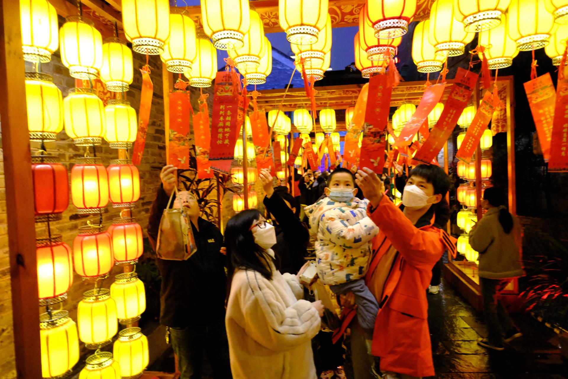 热热闹闹猜灯谜,祈福巡游过元宵。必不可少的是三街两巷新春嘉年华活动的猜灯谜环节。威邕城市运营公司充分研判街区人流拥挤和街区导流问题,在人民剧院旁、银龙巷游廊、新华水塔脚、城隍庙西巷设置4个灯谜区,区域辐射街区一期、二期,既让市民游客体验猜灯谜有奖互动游戏,又能引导到街区各个区域。每个灯谜区人头攒动,不少家庭游客联翩而至,发挥聪明才智挑战猜灯谜。谜面随风起舞,游客穿梭其间,流连忘返。
