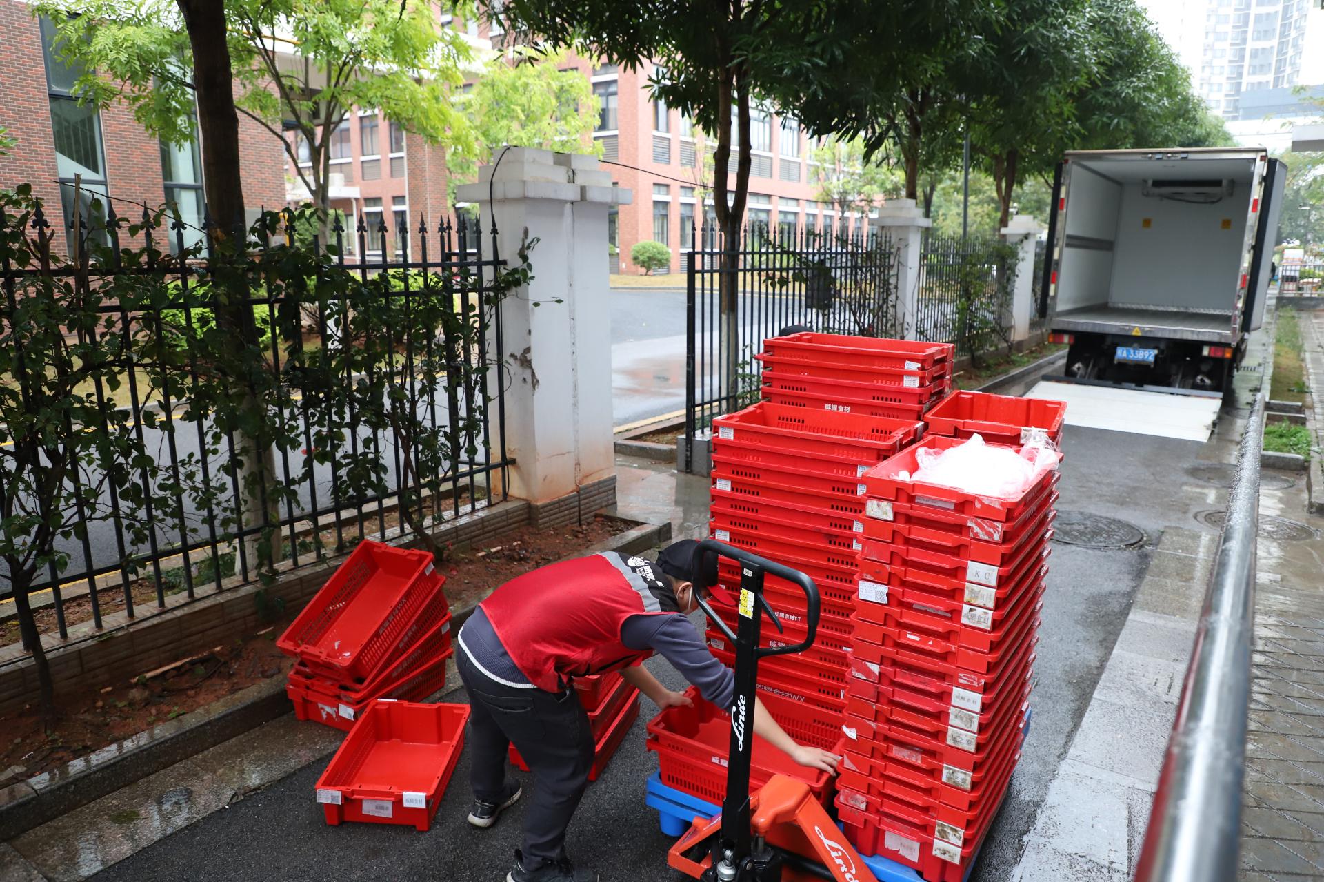 据统计,开学首日,威耀供应链公司配送食材521.29吨,截退品质不达标等食材1.04吨