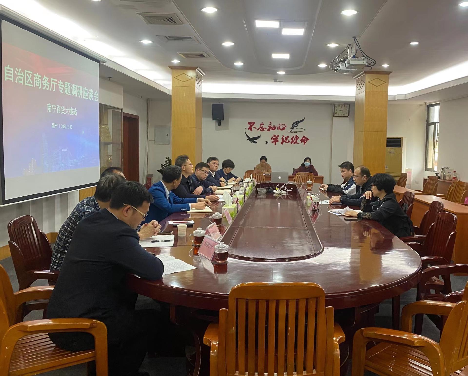 2023年2月13日下午,广西壮族自治区商务厅副厅长粟坚一行莅临南宁百货调研指导工作,并举行了相关座谈会。