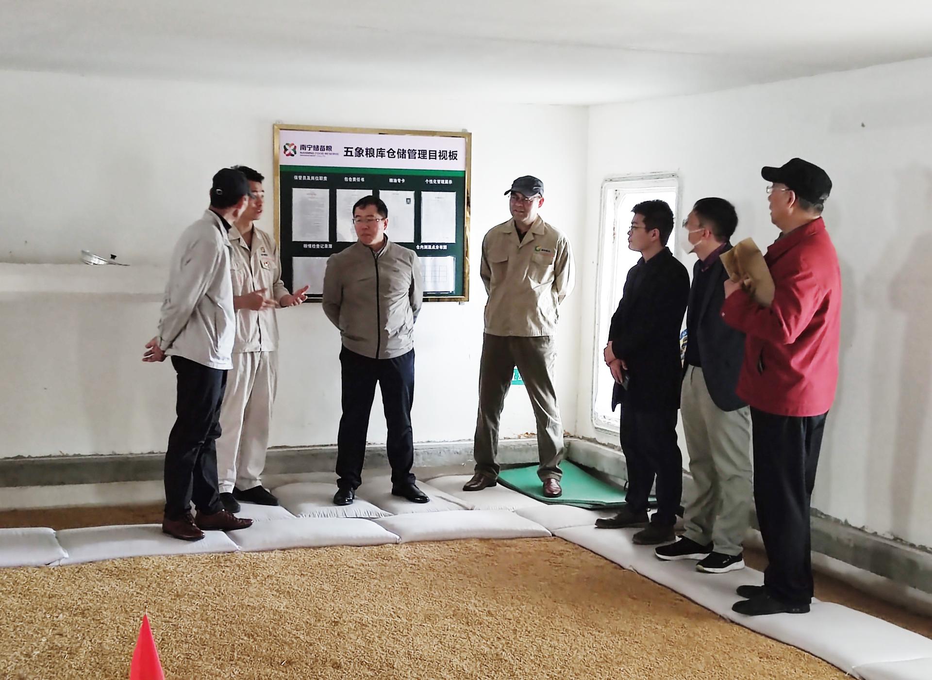 考察组一行实地考察了储备粮公司五象粮库、沙井粮库成品仓、原粮仓储备粮库存情况及仓房和仓储设施设备情况,认真听取储备粮库存品种、轮换出入库管理、仓储保管技术应用以及应急保供能力情况,与公司相关部门负责人围绕粮仓机械通风、控温控湿技术和节能降耗储粮措施应用等方面展开深入交流,并对储粮技术创新与应用、现代化仓房改造和提升、储粮机械设施设备等方面提出专业性建议。