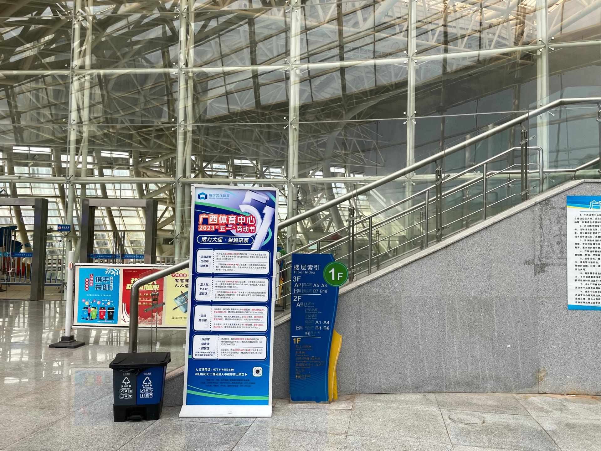 为进一步掀起五一假期消费热潮,使更多市民了解到本次优惠活动,广西体育中心采取了“线上+线下”双渠道宣传,不仅在微信公众号、微信群等新媒体发布活动信息,同时还在各场馆前台显眼处摆放宣传展架,加大宣传力度和广度,方便消费者全面掌握活动信息,鼓励更多市民朋友到广西体育中心健身,点燃运动热情,“飙汗”休闲度假。