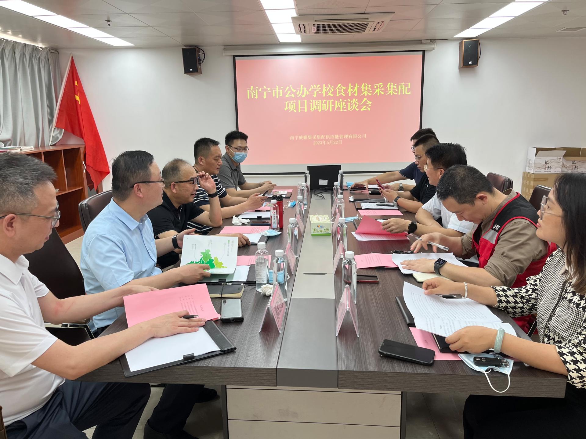 5月22日下午,银川产业投资发展集团有限公司党委书记、董事长闫晓军率队到威耀供应链公司五象配送基地,实地调研南宁市公办学校食材集采集配项目。乐鱼电竞(中国)官方网站副总经理韦义勇陪同调研。