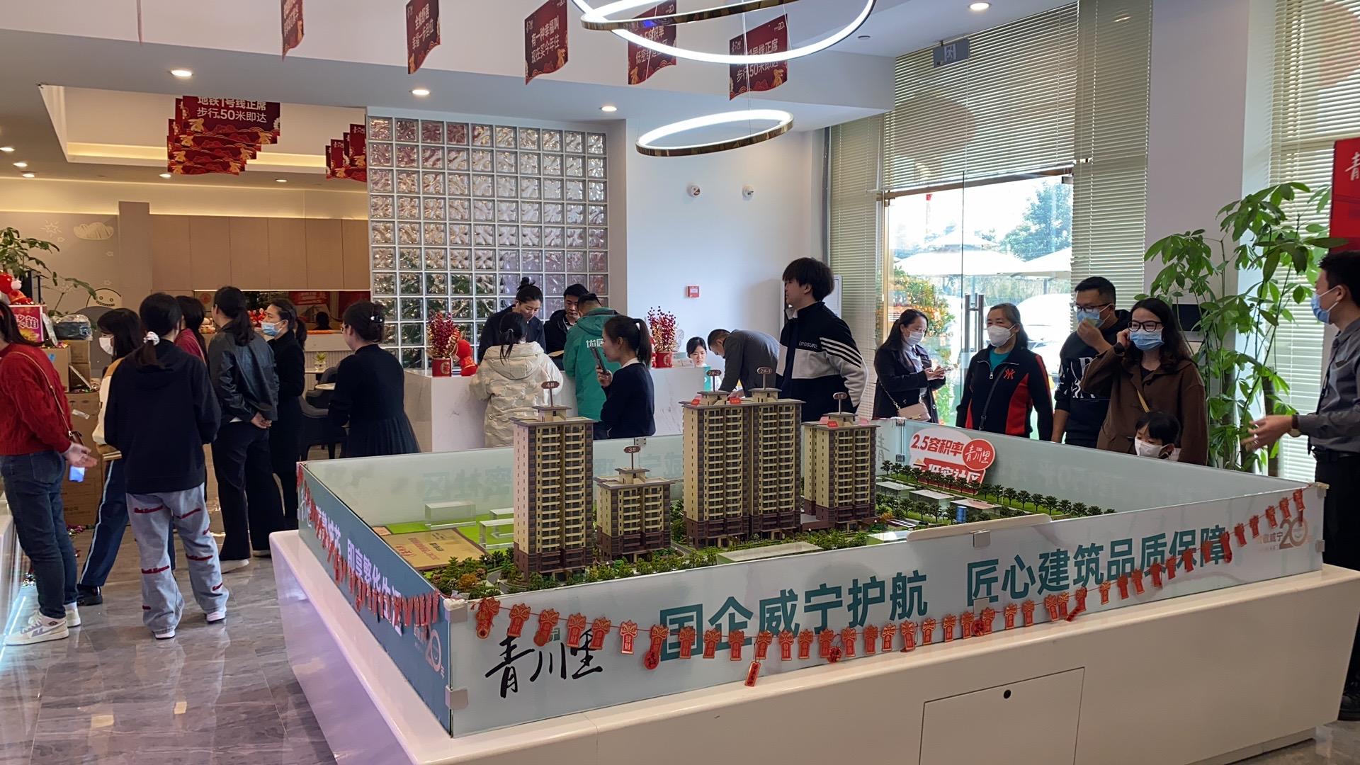 在乐鱼(中国)青运村沙盘前置业顾问给客户作讲解