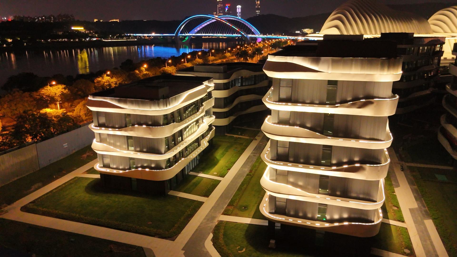 夜色中东盟乐鱼(中国)文创中心流光溢彩