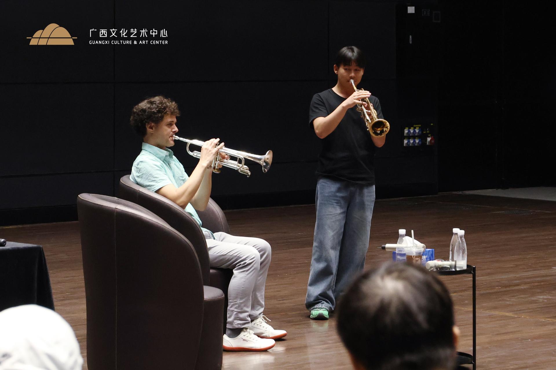 为践行全民艺术普及、文化惠民、文化利民的服务宗旨,进一步营造浓厚的艺术文化氛围,近日,广西文化艺术中心在多功能厅组织开展“艺童成长”小号公益分享交流会,邀请前加拿大铜管五重奏成员法比奥·布鲁姆现场分享乐曲心得。广西艺术学院小号副教授曹天受邀担任交流分享会的主持人,广西文化艺术中心艺术团师生、广西艺术学院学生共30人参加。