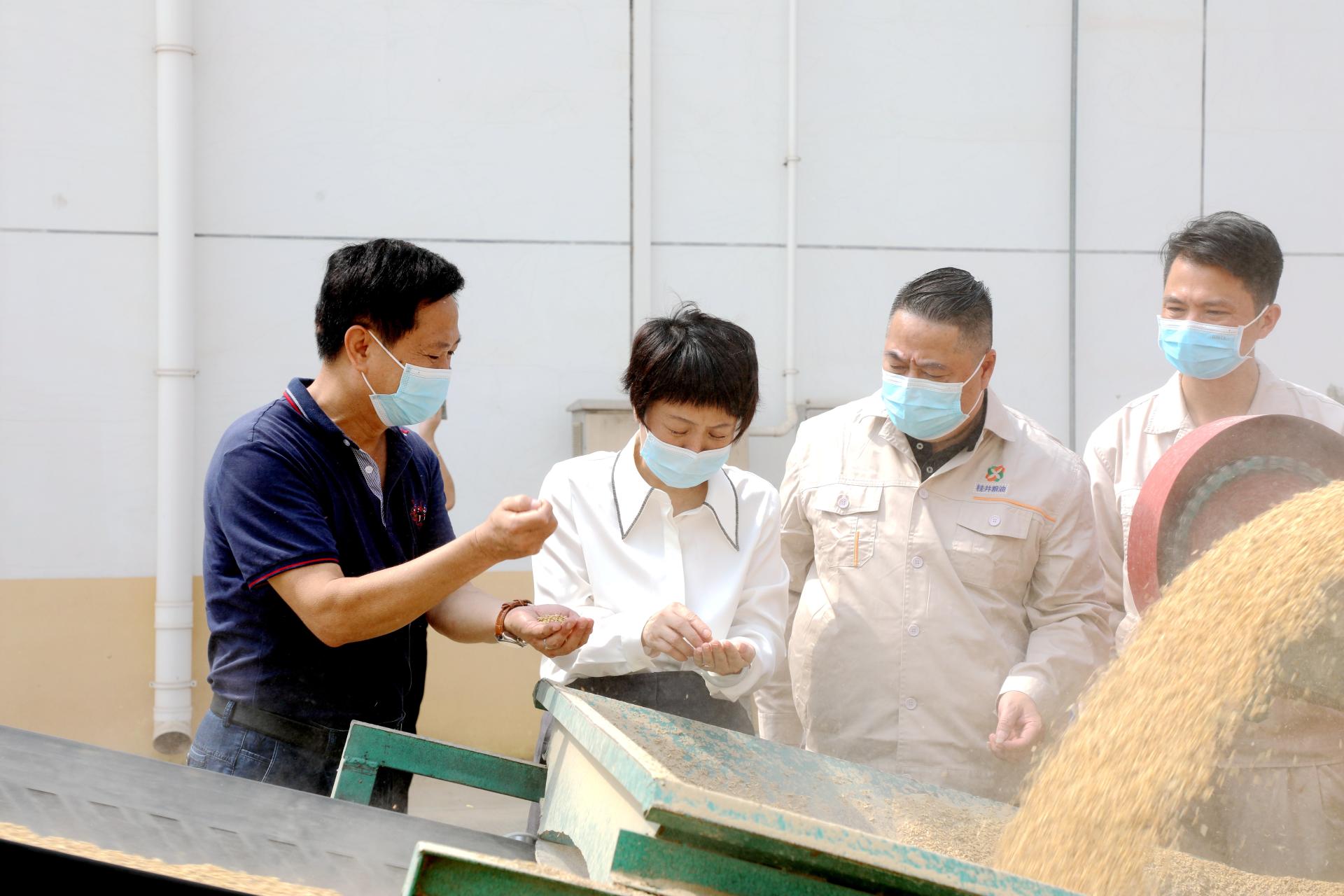 2022年9月14日上午,乐鱼电竞(中国)官方网站党委副书记、总经理刘巧瑛带队到广西(中国-东盟)粮食物流产业园区、南宁市储备粮公司五象粮库、南宁交易场,检查疫情防控和安全生产工作,督促深入贯彻“疫情要防住、经济要稳住、发展要安全”重要要求,严格落实疫情防控和安全生产措施,为第19届中国—东盟博览会和中国—东盟商务与投资峰会的胜利召开营造良好的环境。
