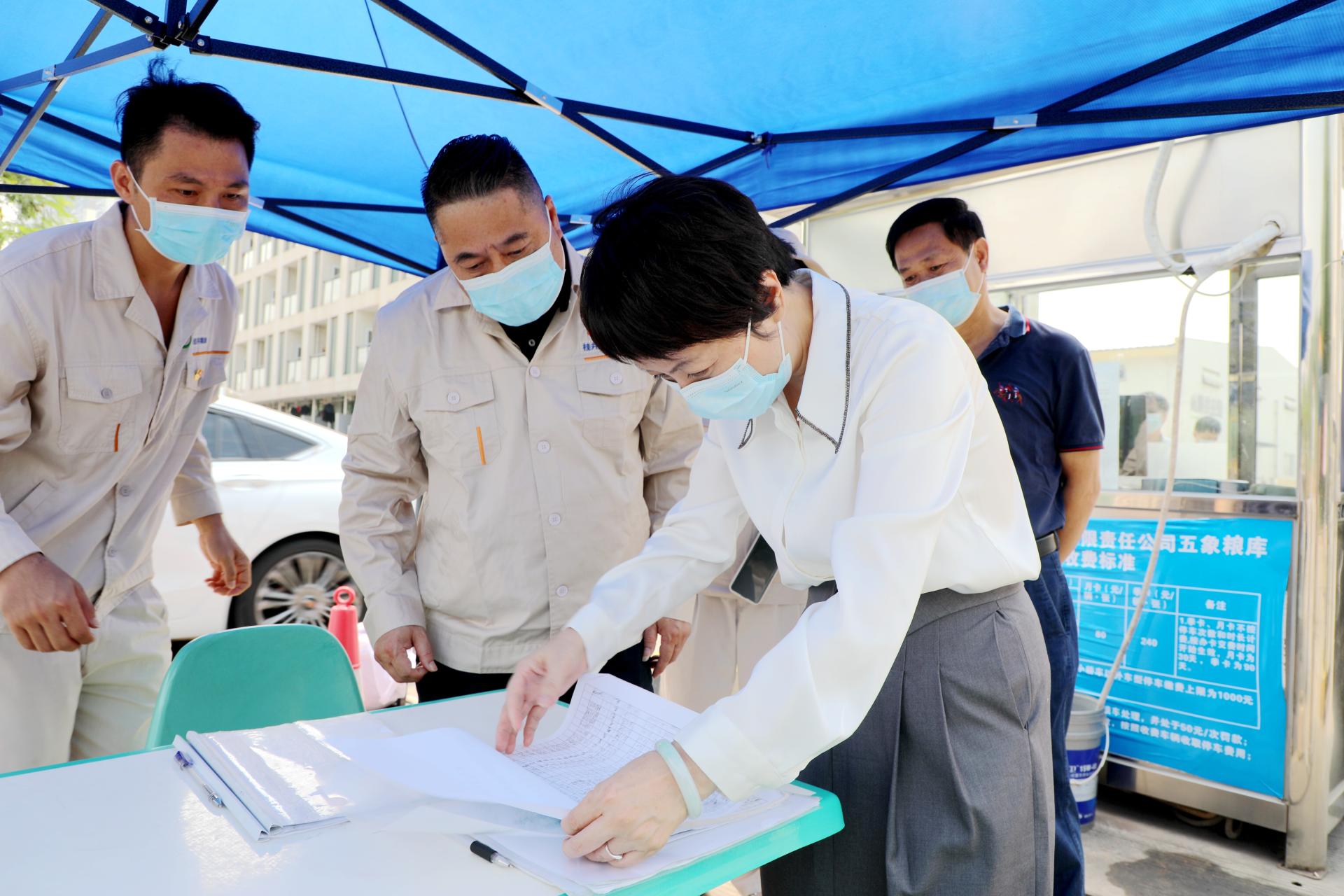 在广西(中国-东盟)粮食物流产业园区项目工地,刘巧瑛详细了解了项目建设进度,强调粮食物流园区公司要严格按照计划里程碑节点要求加快推进项目建设、提前筹划项目销售和运营工作,要进一步压实项目业主、代建单位、施工单位、监理单位等各方责任,落细落实各项常态化疫情防控和安全生产措施,倡导“非必要不离邕”,全力保障农民工资支付,确保项目安全稳定。