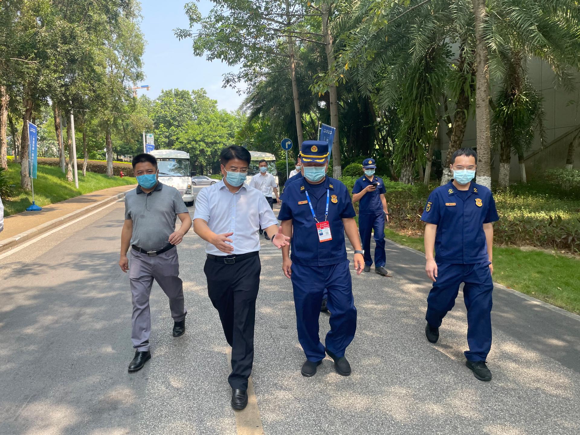 第19届中国-东盟博览会临近,为全面加强“两会”期间各项安全工作,严防安全事故发生。9月14日,集团副总经理、酒店公司党委书记朱海和集团副总经理韦义勇一行到五象山庄检查安全生产和疫情防控工作,严把安全关。南宁市消防支队吴副支队长、良庆区消防大队郑队长莅临指导。
