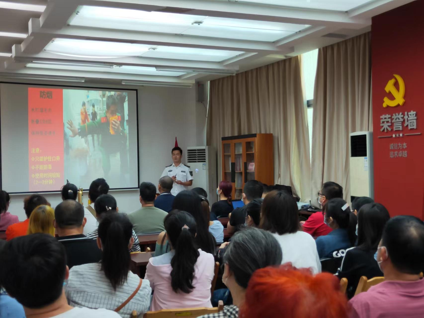 演练前,商业事业部邀请了安全健康教育网广西站教员在和平商场6楼会议室为市场管理员和经营户代表开展消防安全培训,通过讲解理论知识、全面介绍了引发火情的原因及造成的危害,详细讲解了在人员密集场所发生火灾后的自防、自救及逃生技能,并按种类、功能、用途介绍了不同灭火器材及其使用方法。
