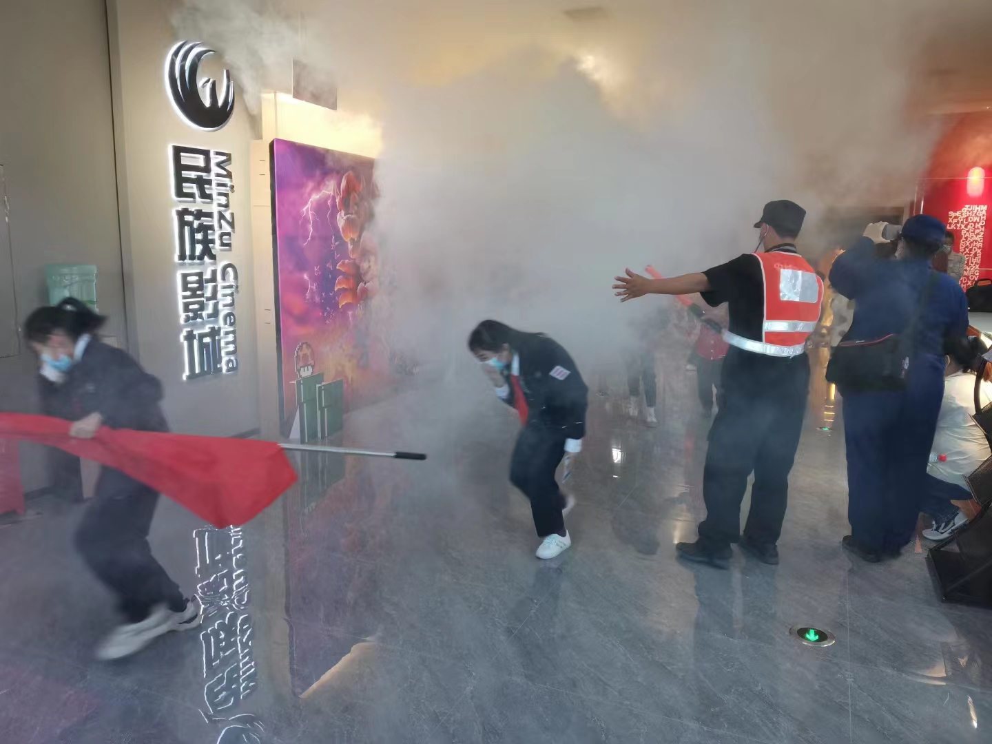 在民族影城绿港欢乐里NAMOS店,经开区消防救援大队大队长刘星讲解了消防栓、灭火器等消防设备的使用方法,现场工作人员更加深刻的体会了如何运用消防设备。随后,模拟了在放映过程中突发电器火灾事故并引起火灾的场景,现场工作人员迅速、有序逃离事故现场,同时应急队伍立即利用各类消防器材开展灭火营救。