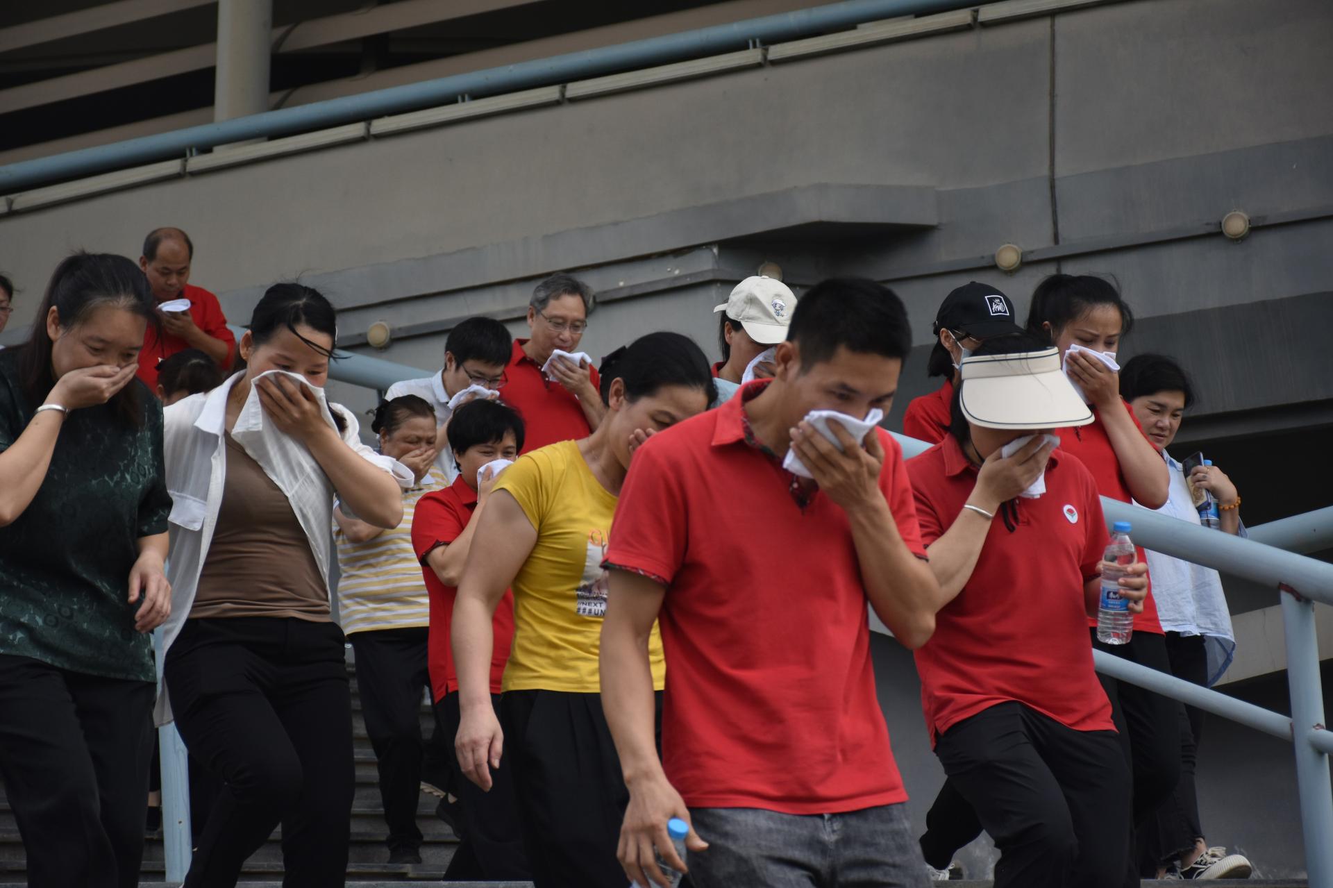 此次演练通过模拟体育馆二楼看台因线路故障起火进行推演,由消防控制室接到火灾报警后通知现场值班员查看,确认火情后立即按要求启动应急预案,通过应急广播通知场馆内人员进行疏散逃生,公司应急工作小组迅速进入紧急疏散状态。整个应急演练过程规范、紧凑、高效,参演人员按照疏散演练方案设定的逃生路线,到达指定安全地带。灭火行动组、疏散引导组、设备运行组和安全保卫组的所有人员沉着应对,严格按照消防应急疏散预案开展现场救援,15分钟内各项应急处置工作顺利完成,达到了演练的预期效果。