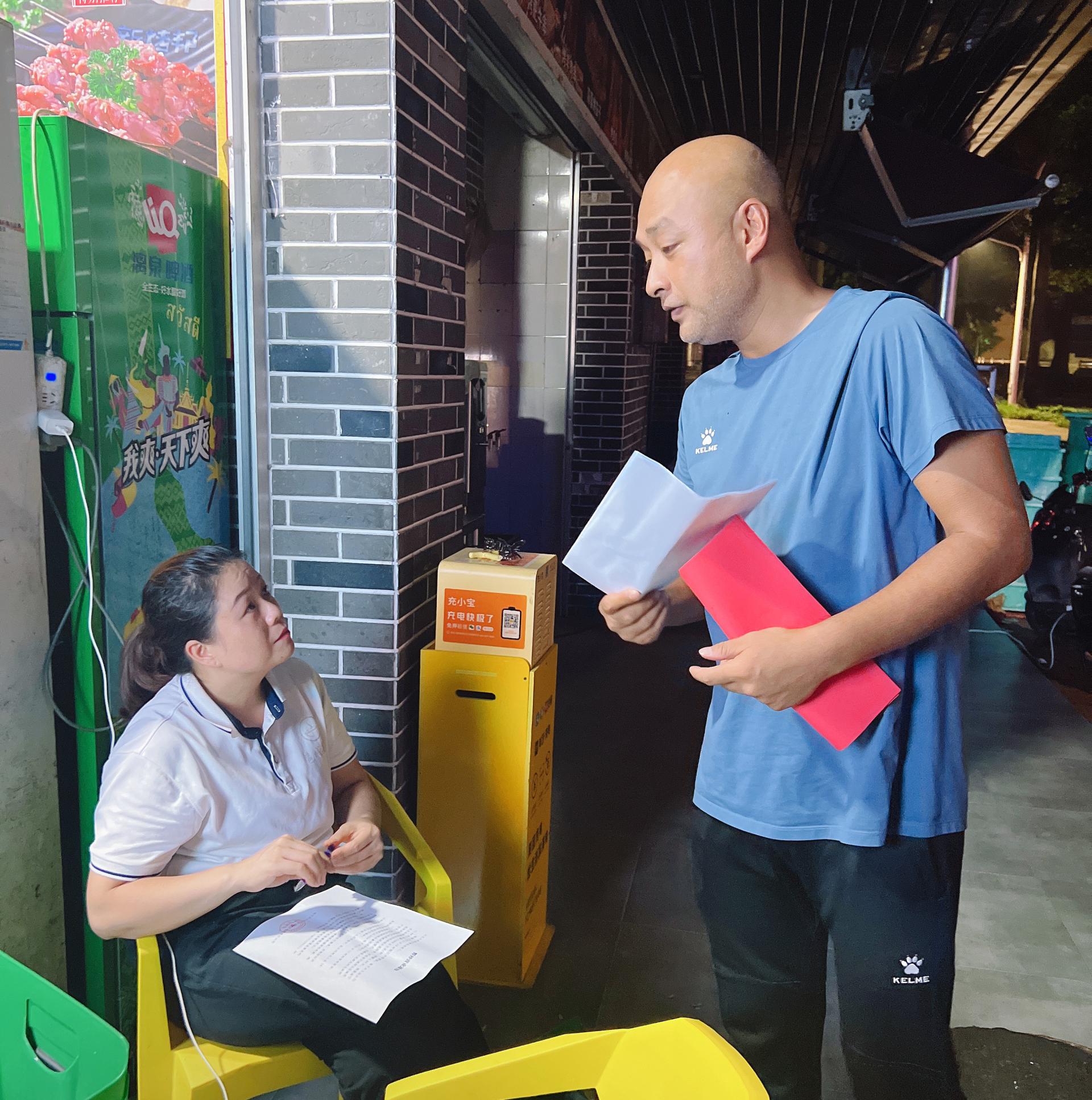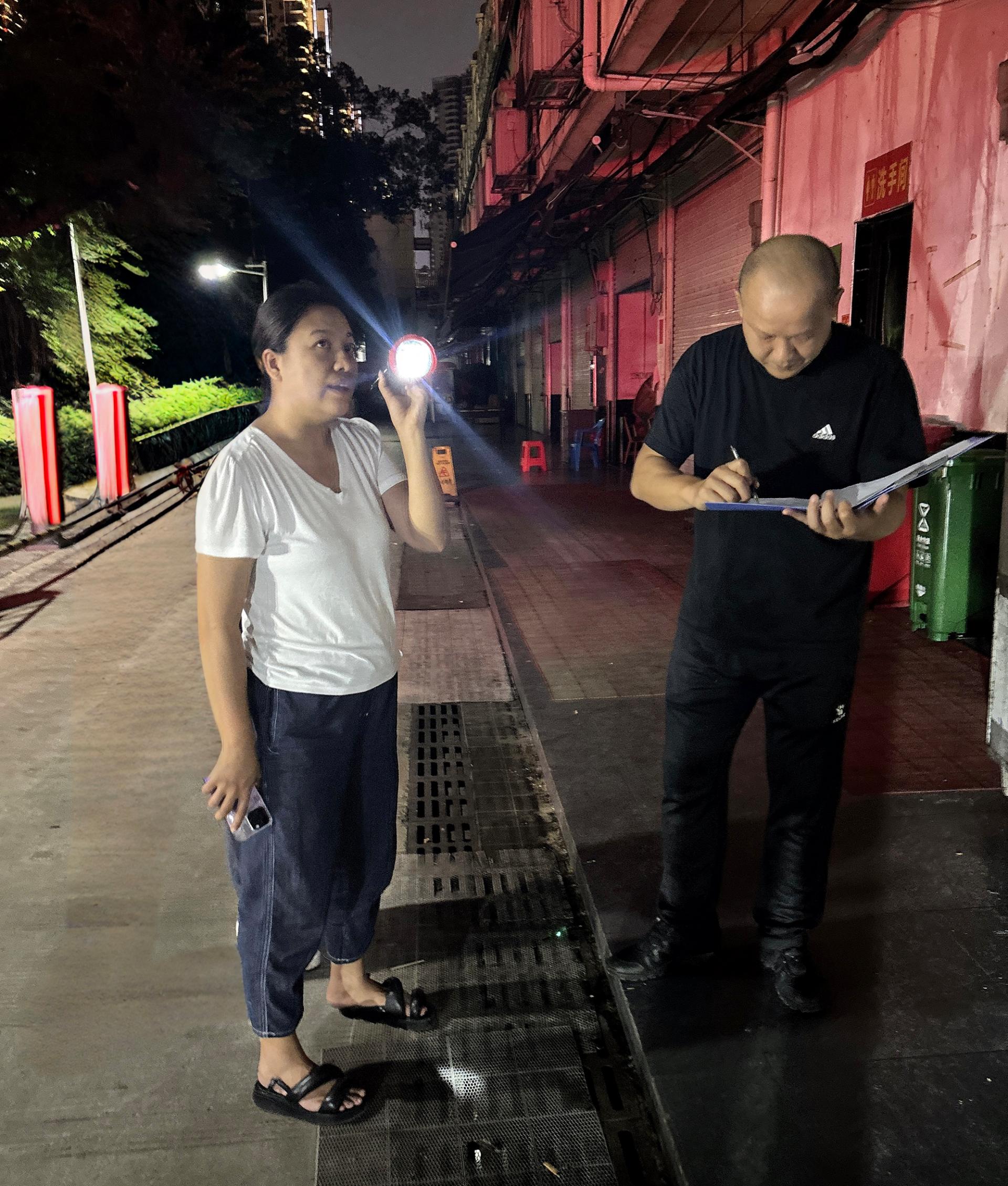 值班人员向租户普及防洪应急知识并协助开展清淤工作