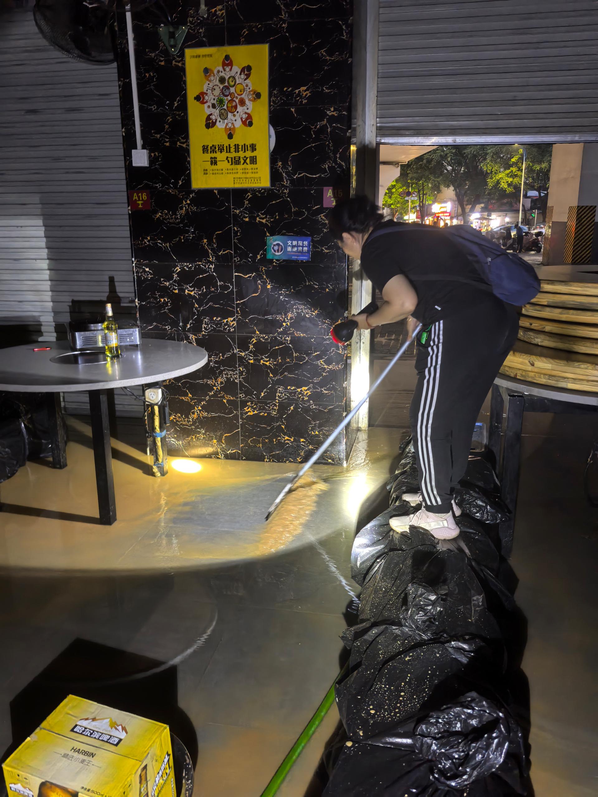 入汛以来,公司紧急成立防汛应急抢险专班,全力克服受灾面积广、排查数量大和极端天气等种种困难,实行24小时值班值守,对出现受损漏水的商铺进行全天候巡查监控,避免险情扩大。同时,加大应急抢险力度和巡查检查频次,设置警戒标志和警戒线,采取商铺全面断电措施保障人员安全,协助商铺租户搬运物资、接水储水和清扫铺内积水,积极对接南宁市邕江防洪排涝工程管理中心开展现场勘察,研究解决渗水、漏水和墙体开裂等难题,并积极向租户普及防洪抢险应急处置知识,与租户共克时艰。
