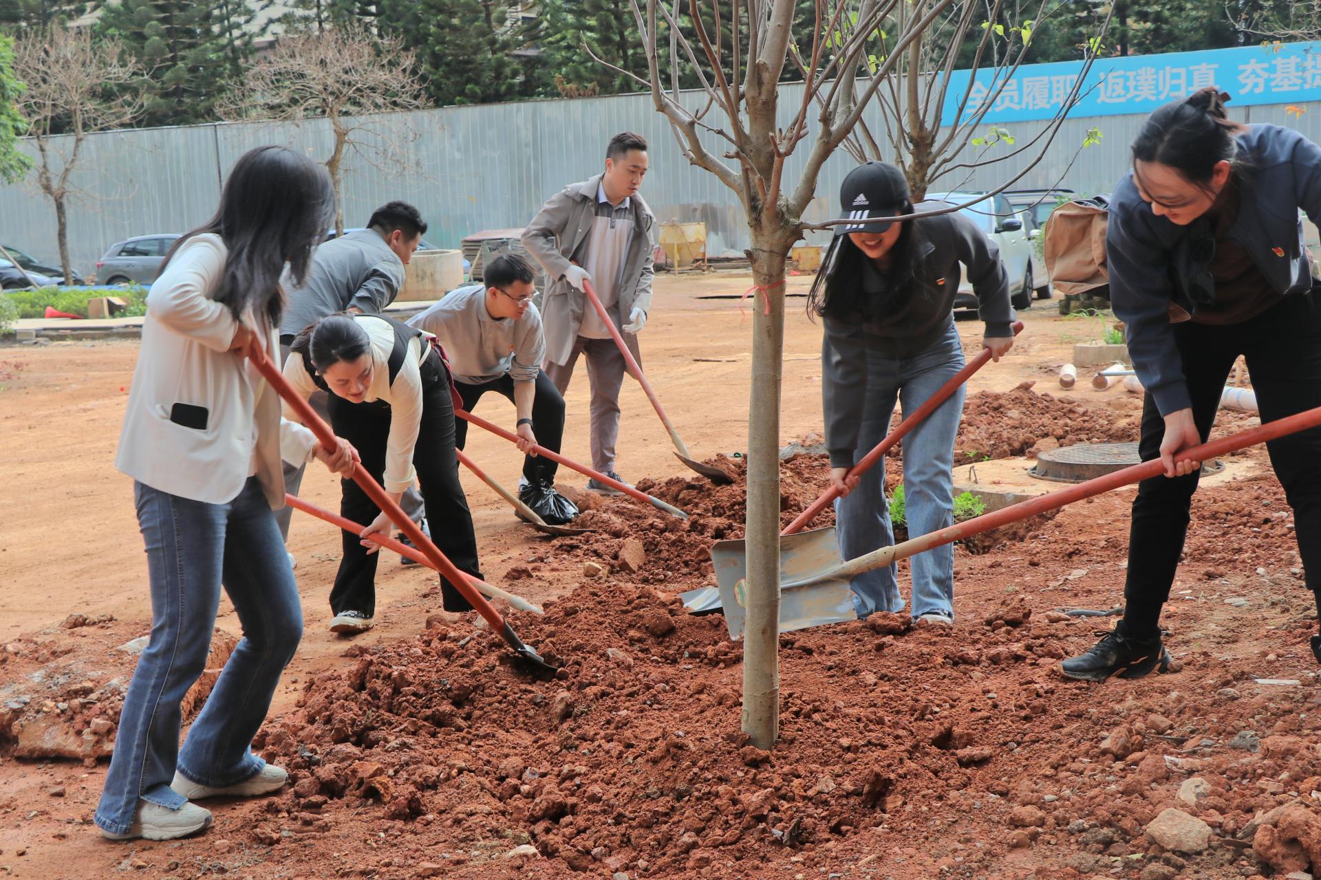 在园林工程师的讲解指引下,各企业代表迅速分组行动,挥锹铲土、扶苗培土、提水浇灌,每个环节都井然有序。在植树过程中,不同领域的代表在劳动中增进交流。“这种联建联动让我们跳出行业视角,在交流中碰撞出新思路,这片共建林既是生态成果,更是合作发展的见证。”乐鱼(中国)房地产开发集团机关党支部负责人表示。