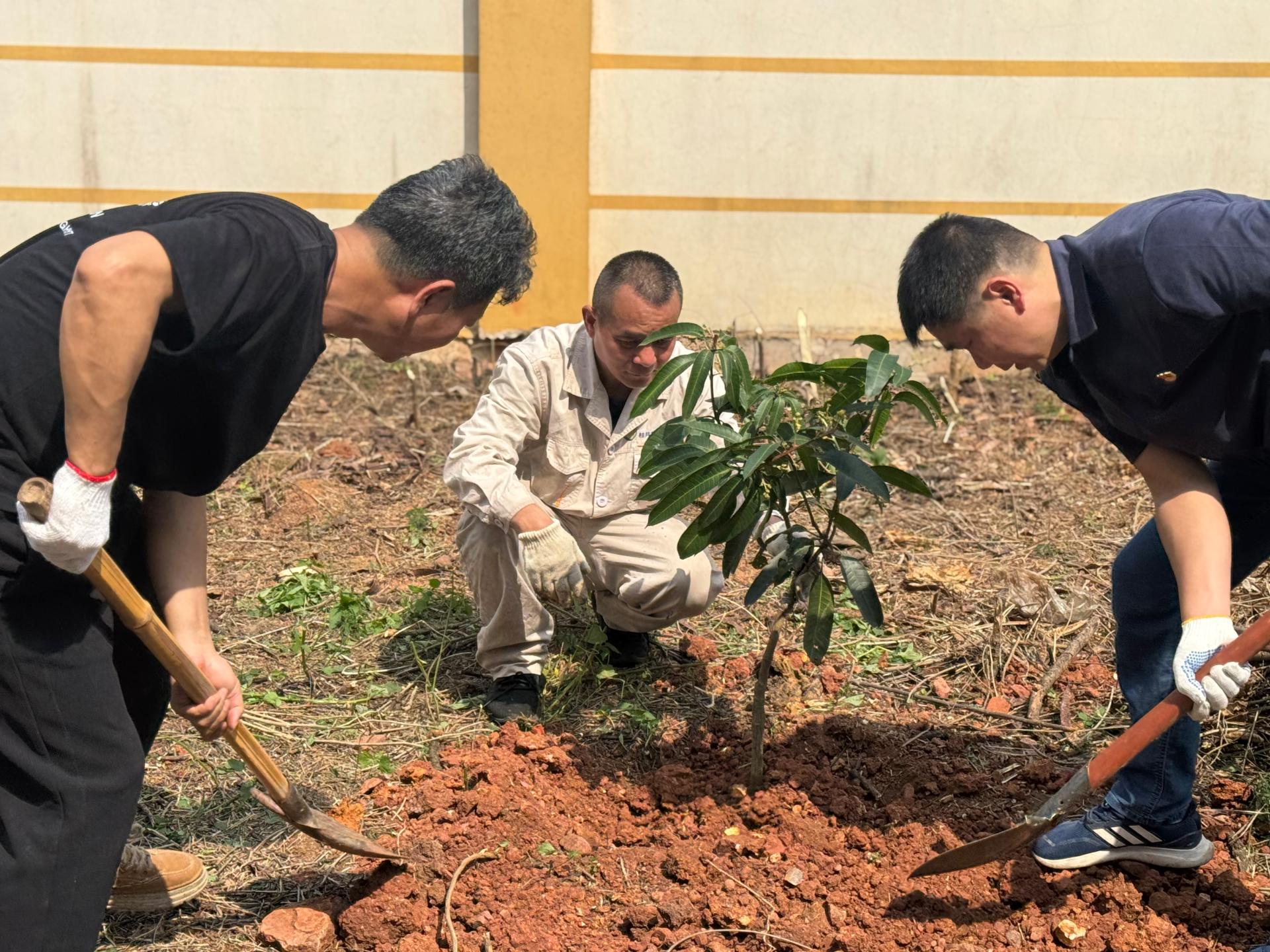 在五象山庄罗拉花园,乐鱼(中国)资产经营集团机关党支部开展“植此青绿 共树未来”义务植树活动。活动中,机关党支部书记黎永斌以《加快构建绿色低碳循环发展经济体系,促进经济社会发展全面绿色转型》为题为全体党员上了一堂专题党课,强调植树造林对于生态环境保护的重要意义,鼓励全体党员积极投入活动中。随后,大家迅速分组,领取工具,奔赴植树区域。现场分工明确、配合默契,党员们有的挥锹铲土,有的扶苗填坑,有的浇水灌溉,原本空旷的土地上,紫薇树苗扎根沃土、错落有致,在春风中展现出勃勃生机。