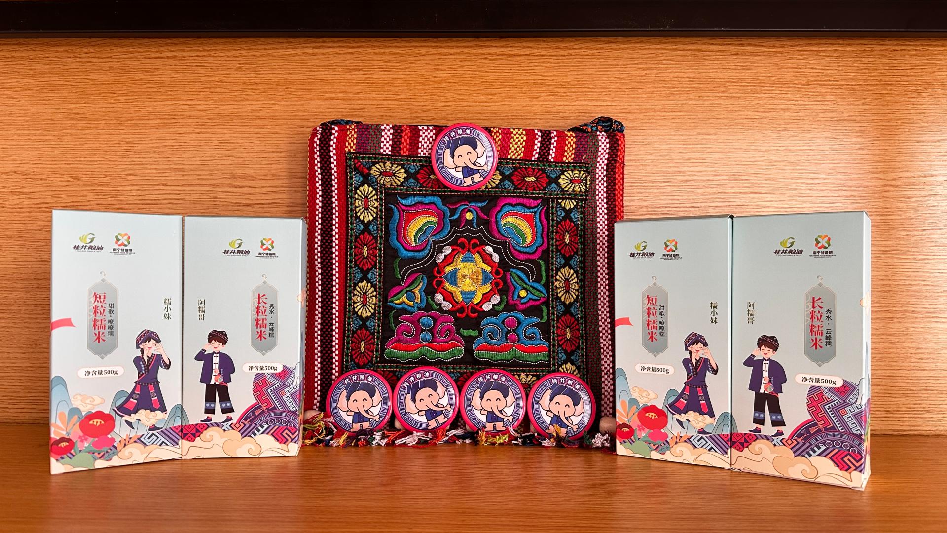 民俗美食品鉴区犹如一幅展开的八桂风情画卷,热气腾腾的螺蛳粉散发着独特的香气,五彩斑斓的糯米饭宛如彩虹般绚丽,翠绿的艾粑透着清新的草本芬芳。南宁市储备粮公司还特别展示了多款民族特色产品及周边,精美的民族特色包装和定制款民族风桂井小象吧唧(徽章)让职工们深入了解了传统粮食文化的独特魅力。