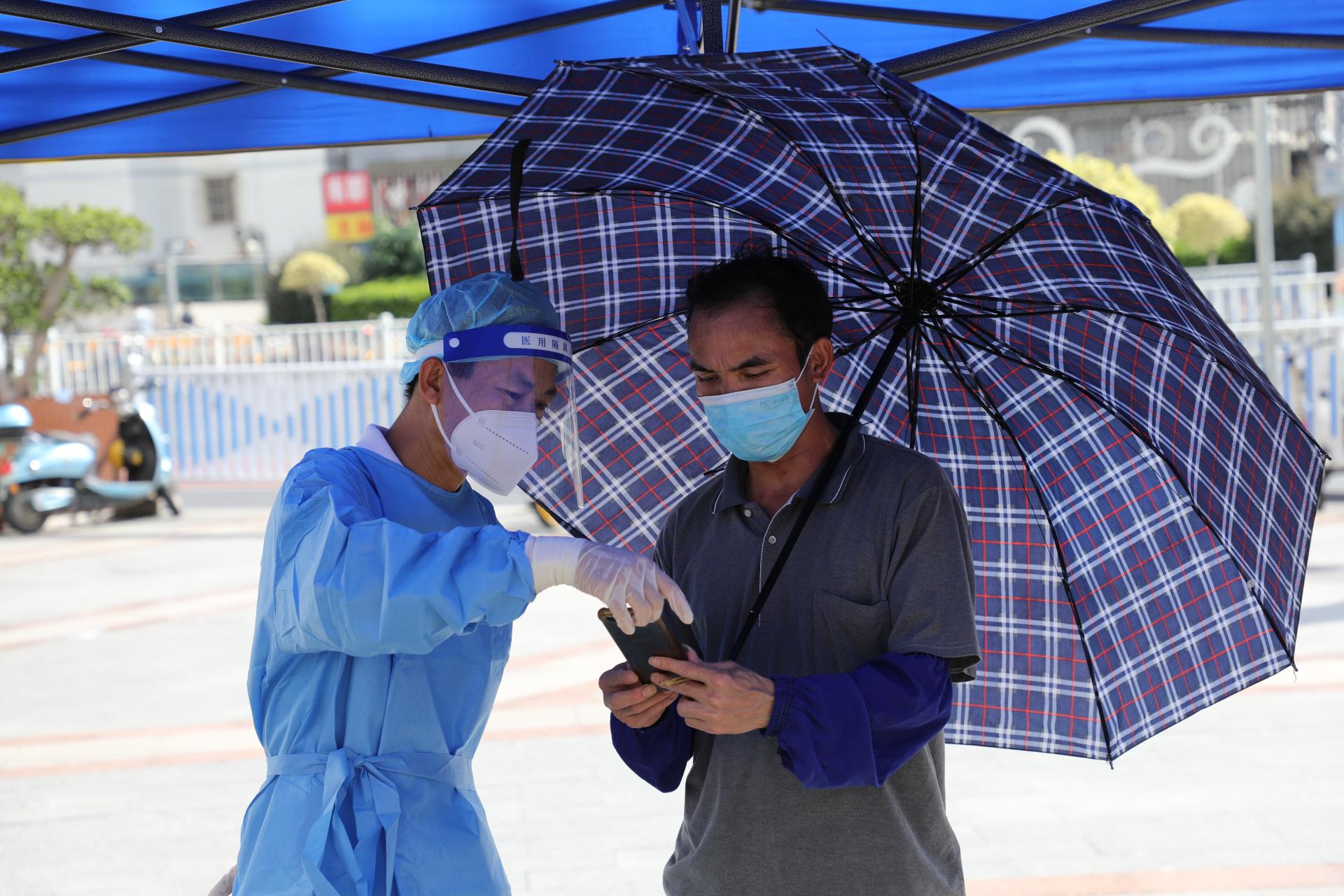 采样点工作人员查验“三码”