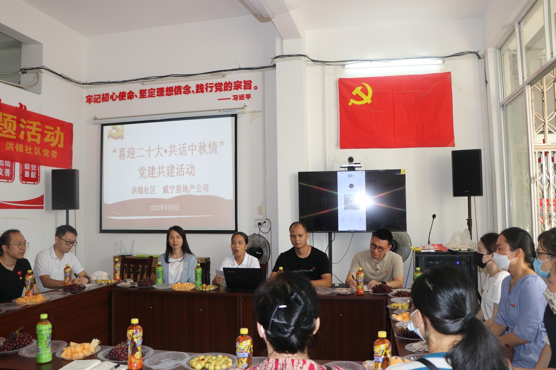 2022年9月8日上午,乐鱼(中国)房地产公司党委与那洪街道洪锦社区党委开展“喜迎二十大•共话中秋情”党建联建系列活动,来自乐鱼(中国)房地产公司的党员、社区党员、志愿者代表和群众代表共30多人参加活动。