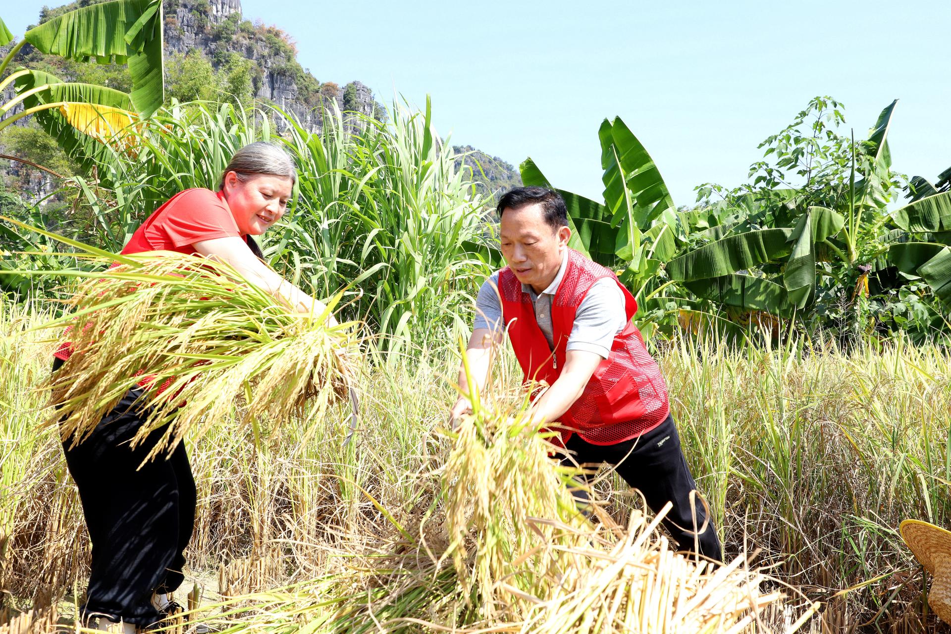 金秋时节稻花香,党建引领助秋收。2022年10月17日上午,身穿红马甲的乐鱼(中国)市场公司“威慧星”党员志愿者忙碌的身影活跃在定点帮扶村上林县白圩镇爱长村的田间地头,开展新时代文明实践“党建引领·助农秋收”志愿服务活动,帮助缺乏劳动力的村民群众解决生产生活上的实际困难。