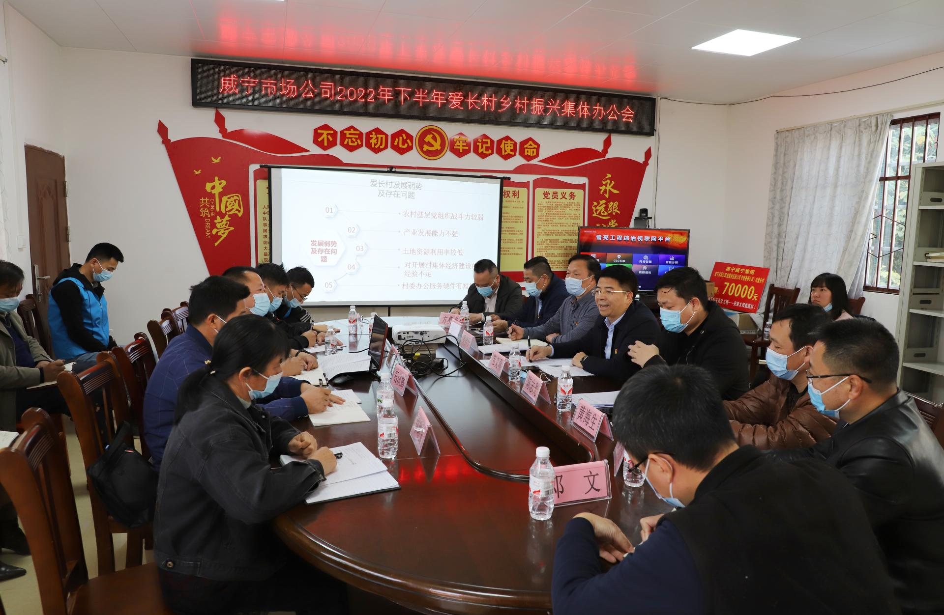 韦义勇指出,乡村振兴战略是实现农业农村现代化的关键所在,作为帮扶后盾单位,我们要坚定不移坚持“以人民为中心”的发展思想,聚焦村民群众普遍关注的关键问题,办好民生实事,让帮扶村的老百姓的获得感更足、幸福感可持续、安全感更有保障。一是全面强化党建引领。驻村第一书记和村“两委”干部要充分发挥基层党组织战斗堡垒和村内党员先锋模范作用,落实党员与致富带头人的“双发展、双促进”工作要求,打造“党建+”品牌,推动特色产业可持续、高质量发展。二是认真梳理年内各项工作。要通过列清单、查台账等方式,对已完成工作进行再完善、再补充,对仍在开展的工作快马加鞭、迎头赶上,对存在困难及进度缓慢的项目进行全面细致地调研,全力确保年内各项工作按时保质完成。三是科学谋划2023年各项工作。要严格按照“产业发展,设计先行”工作原则,提升科学统筹规划能力,为帮扶村特色产业创出新路子、做出新成效打稳基础。四是主动建强干部队伍。驻村第一书记和村“两委”干部要在工作中向书本学、向实践学、向群众学,及时总结成功经验及优秀做法,激活干事创业热情,全面提升干部队伍的综合素质。同时,韦义勇代表乐鱼电竞(中国)官方网站、乐鱼(中国)市场公司表态,将依托乐鱼电竞(中国)官方网站各业务板块平台优势,助力寨鹿村、爱长村特色产业蓬勃发展。此外,希望寨鹿村和爱长村驻村第一书记强化沟通交流,互相取长补短,共谋发展。