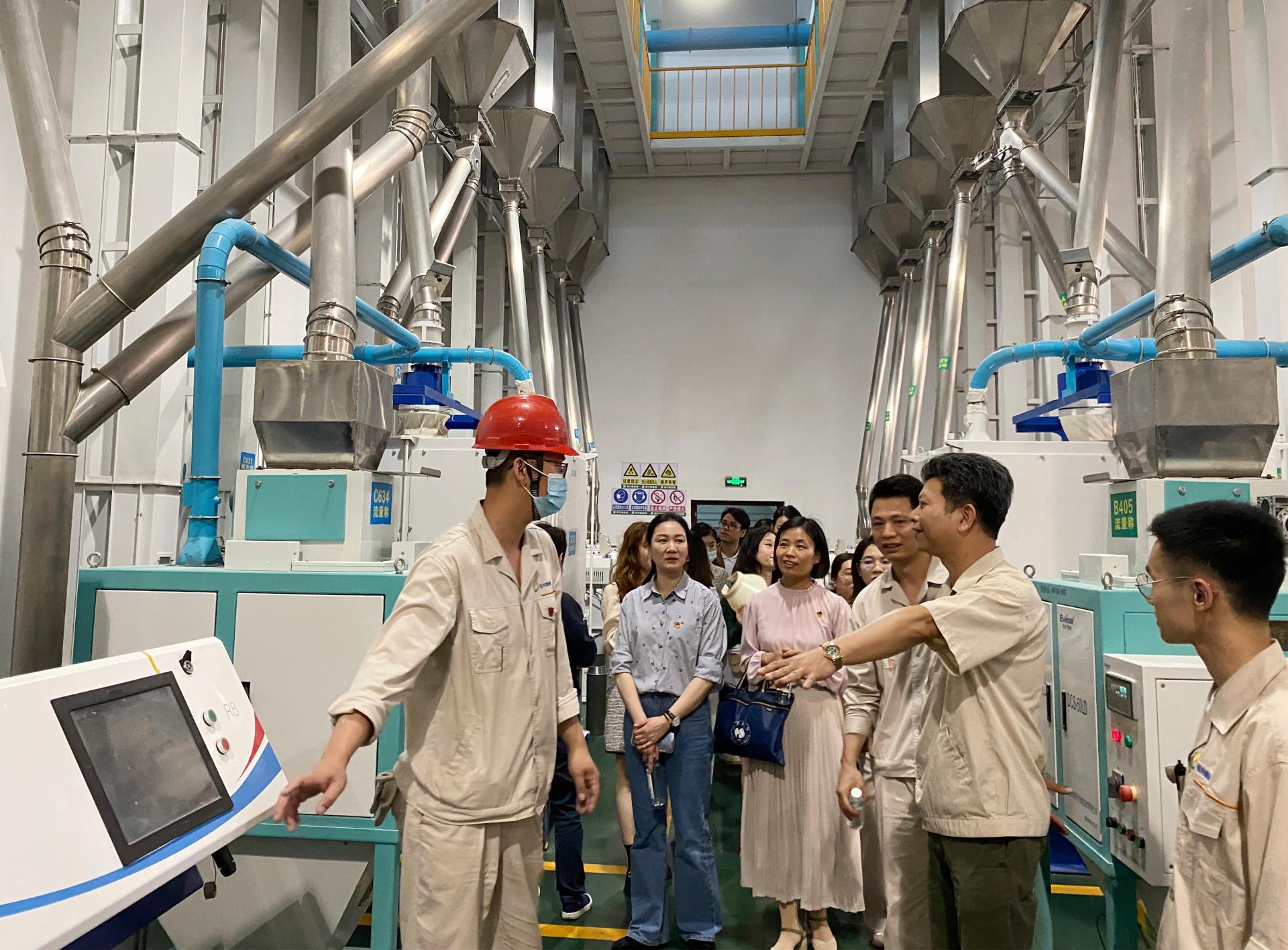 公司机关第一党支部党员在五象粮库工作人员的引领下,先后深入五象粮库油脂车间生产线、大米车间生产线、仓储科成品仓等区域参观学习。在浓郁的稻香中,细致、全面地了解储备粮粮油储存、大米加工及油脂灌装业务的全过程,近距离体会“宁流千滴汗,不坏一粒粮”的匠心精神。