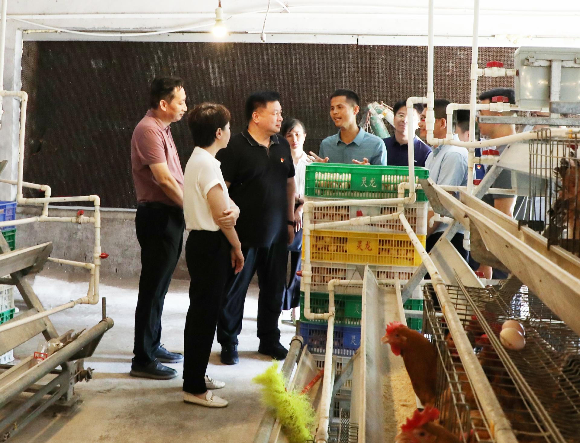 集团领导班子一行实地考察调研杨梅村合作社合作肉鸡养殖场“陶圩鸡”的养殖经营情况,认真听取养殖场负责人对养殖“陶圩鸡”的养殖管理、销售收益、利益联结等情况介绍,详细询问了解现阶段养殖和营销方面存在的难点和解决措施。