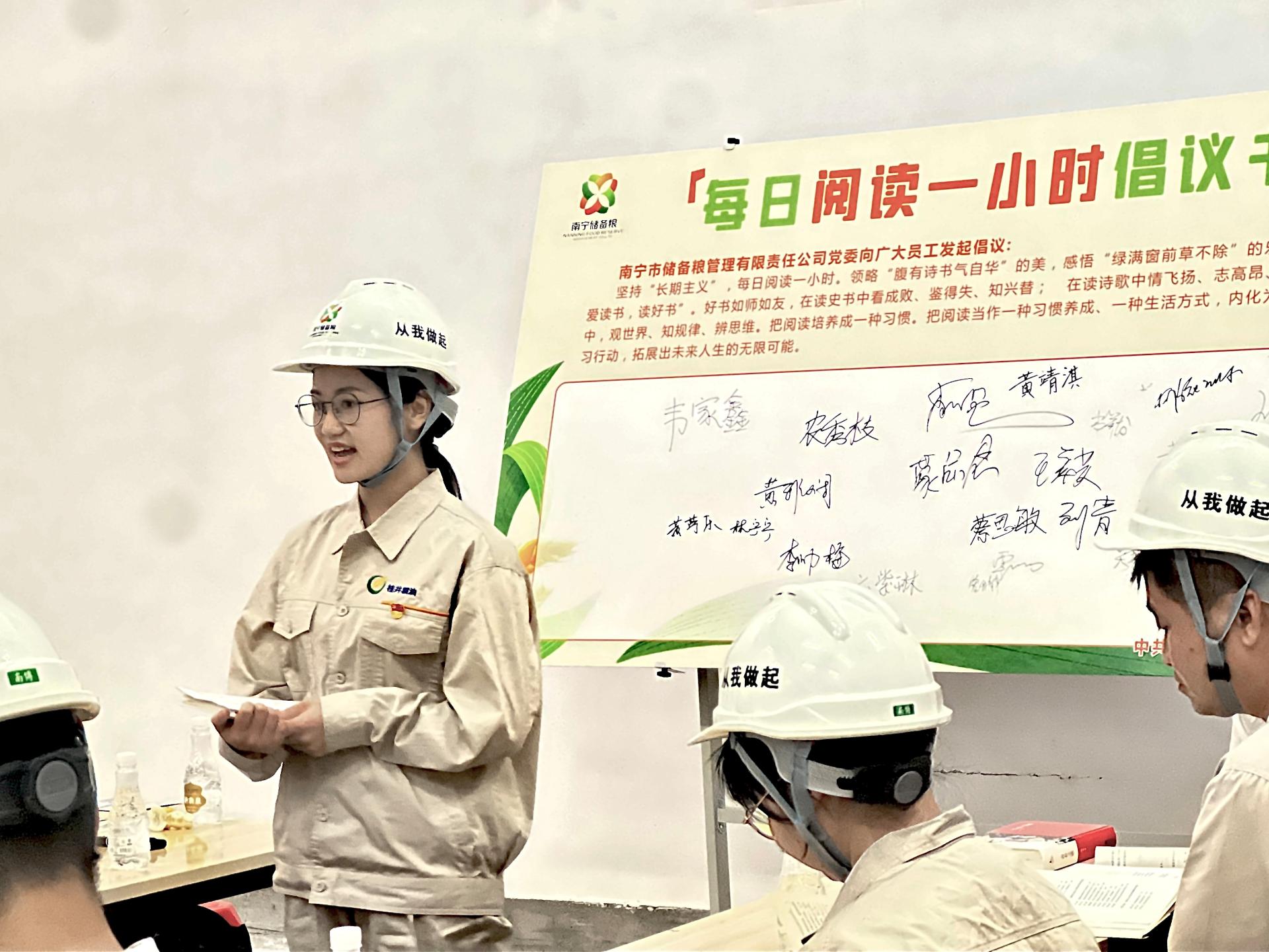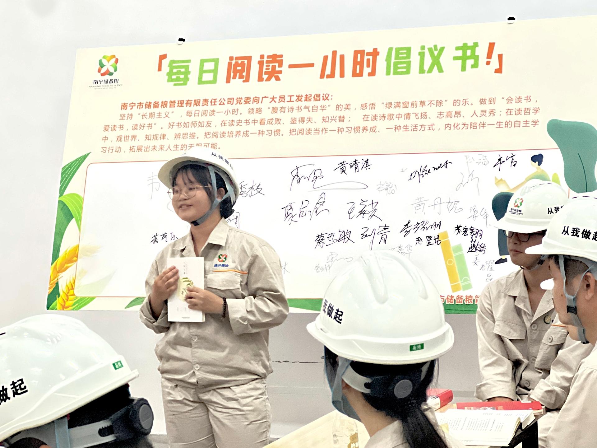 仓守优粮万家宁,胸藏文墨建新功。为深入贯彻落实党的二十大精神,营造公司全体党员职工形成“会读书、爱读书、读好书”的良好氛围,2023年5月31日,储备粮公司党委在五象粮库成品仓举办“书香飘粮仓、建功传万代”读书分享活动。