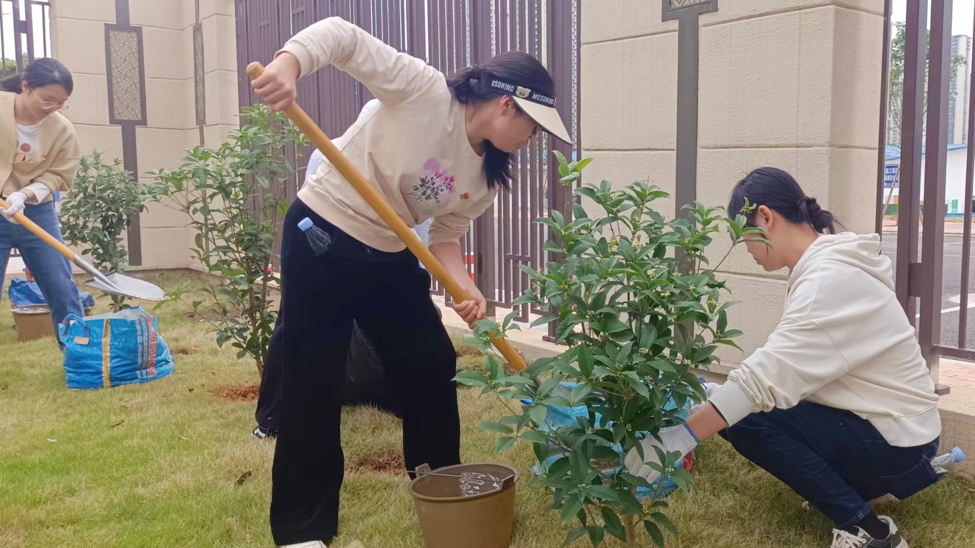当天,党员们来到乐鱼(中国)青运村幼儿园区域开展植树活动,大家怀着为小朋友们创造一个绿色美丽的学习环境,帮助他们健康成长的满腔热情,积极地投入到这场绿色行动中。“我来填土,你帮我扶好树苗。”“咱一起来把这个土踩实。”“够了够了,水浇这么多就可以了。”植树过程中,每两、三位同志作为一支“植树小队”,大家分工协作,填土、扶树、浇水,认真细致、配合默契地完成每道工序。植树现场繁忙有序,气氛活泼热烈。在大家的共同努力下,一棵棵芬芳馥郁的四季桂迎风挺立,蕴含着浓浓期许,焕发着勃勃生机。